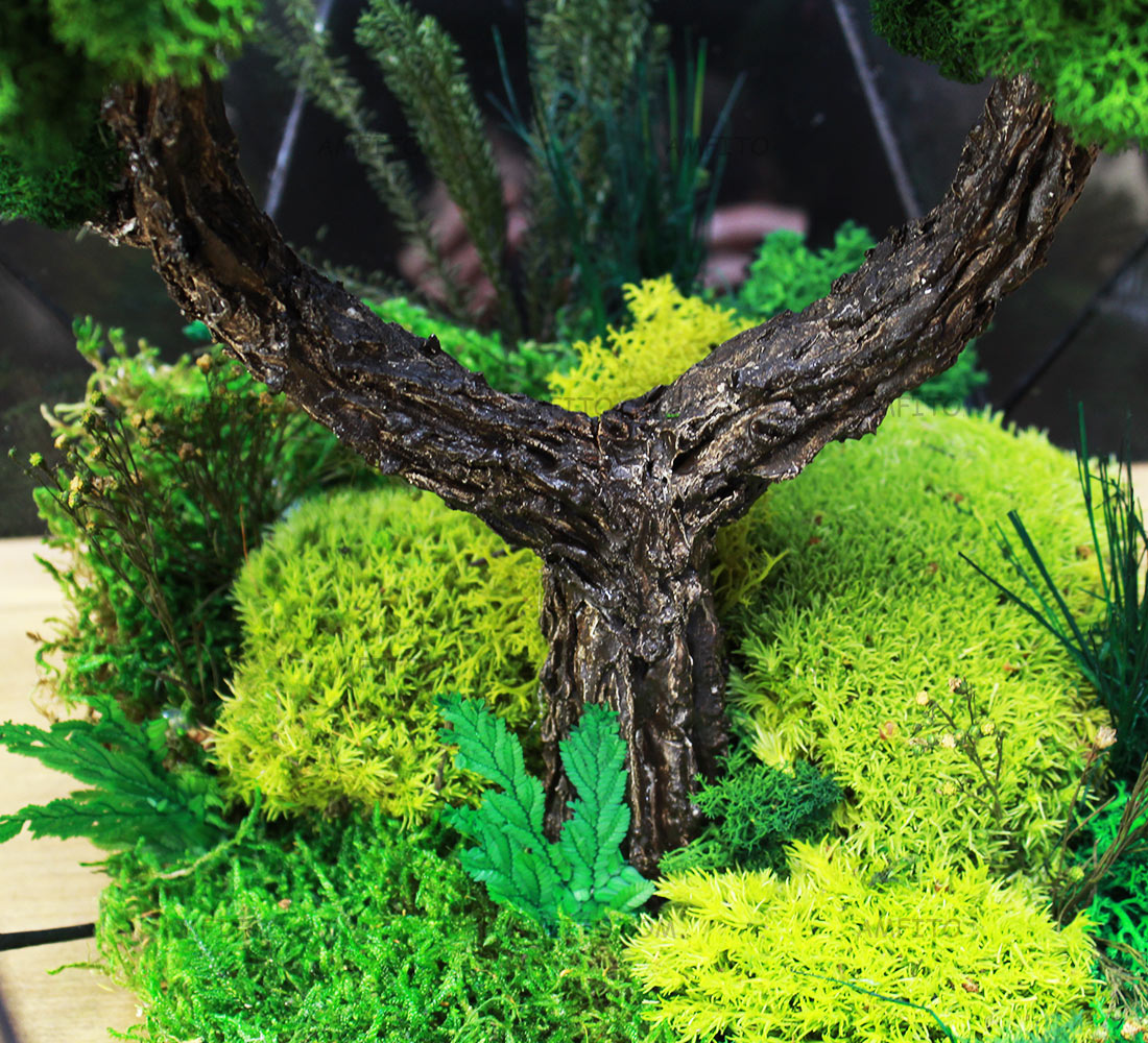 Такой вариант озеленения отлично подходит для офисного помещения, а так же мало освещённого места в доме или квартире. Стабилизированные растения - это не искусственный материал, а природный. Изначально выращиваются настоящие растения, срезаются, просушиваются и затем замачиваются в специальном растворе( глицериновом, солевом, или глицериново-солевом), где напитываются заново, возобновляя свой тургор( эластичность и плотность). Затем подкрашиваются гипоаллергенными красителями. Таким образом на ощупь и вид это похоже на живое, только срезанное растение, но только оно не завянет и не потеряет свой вид ближайшие 10-12 лет.