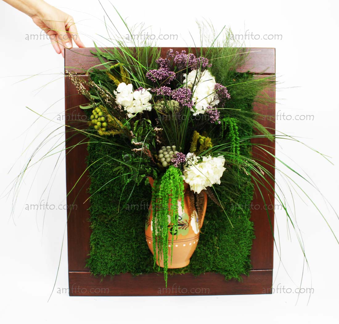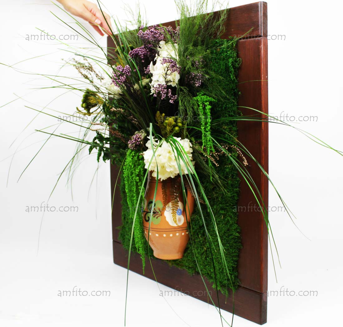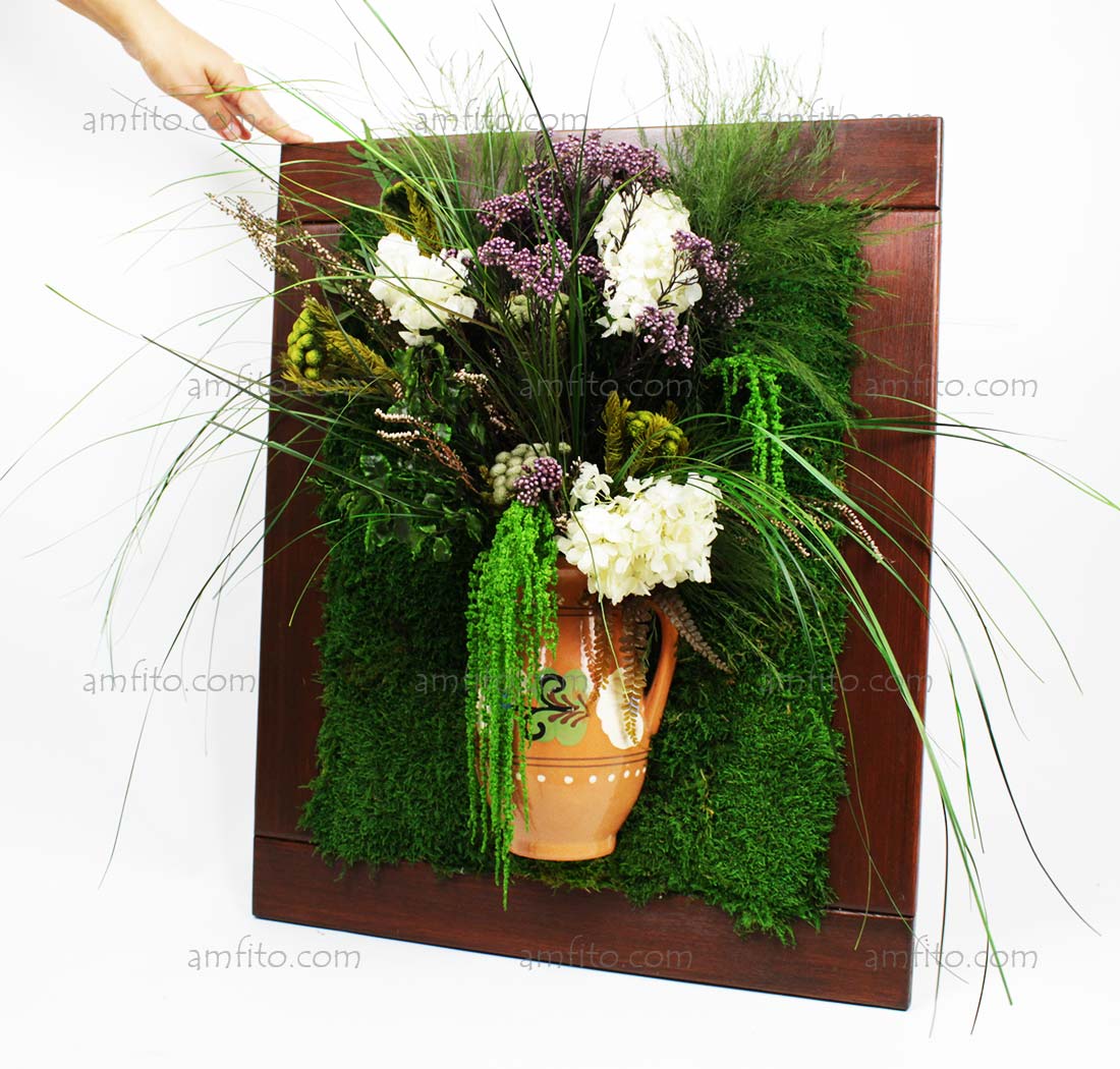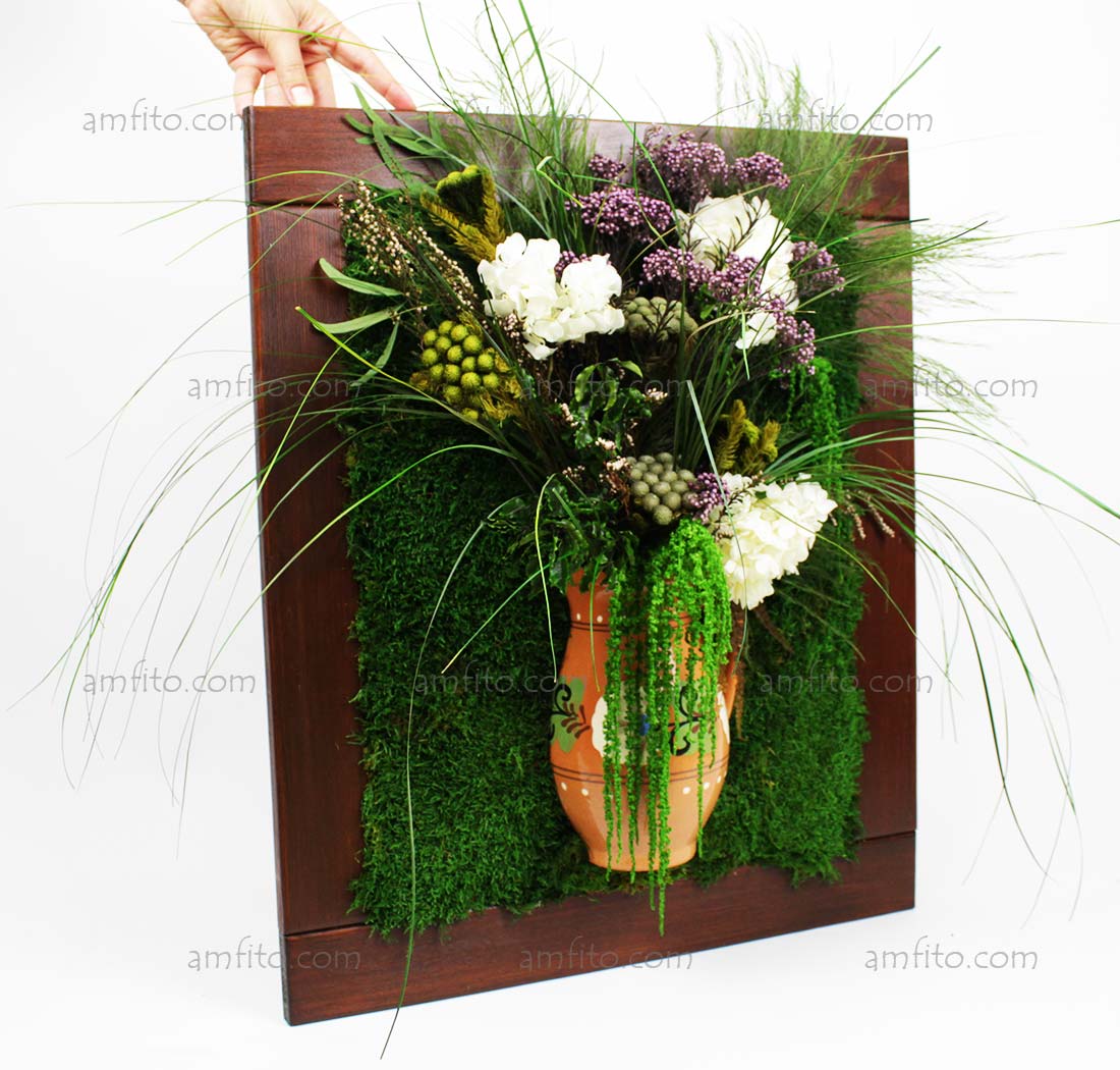 Фитокартина со стабилизированными растениями и стабилизированным мхом.