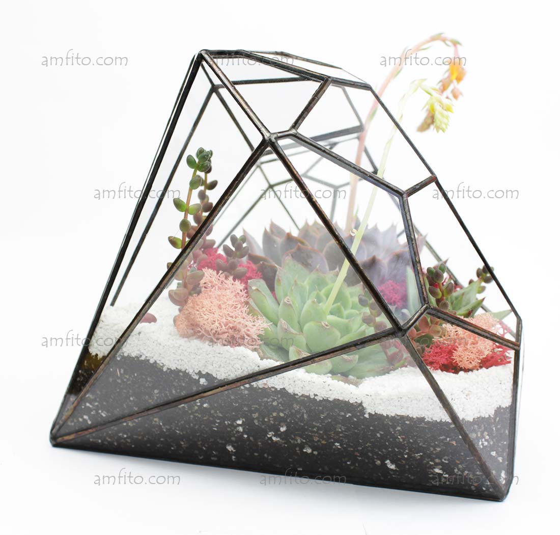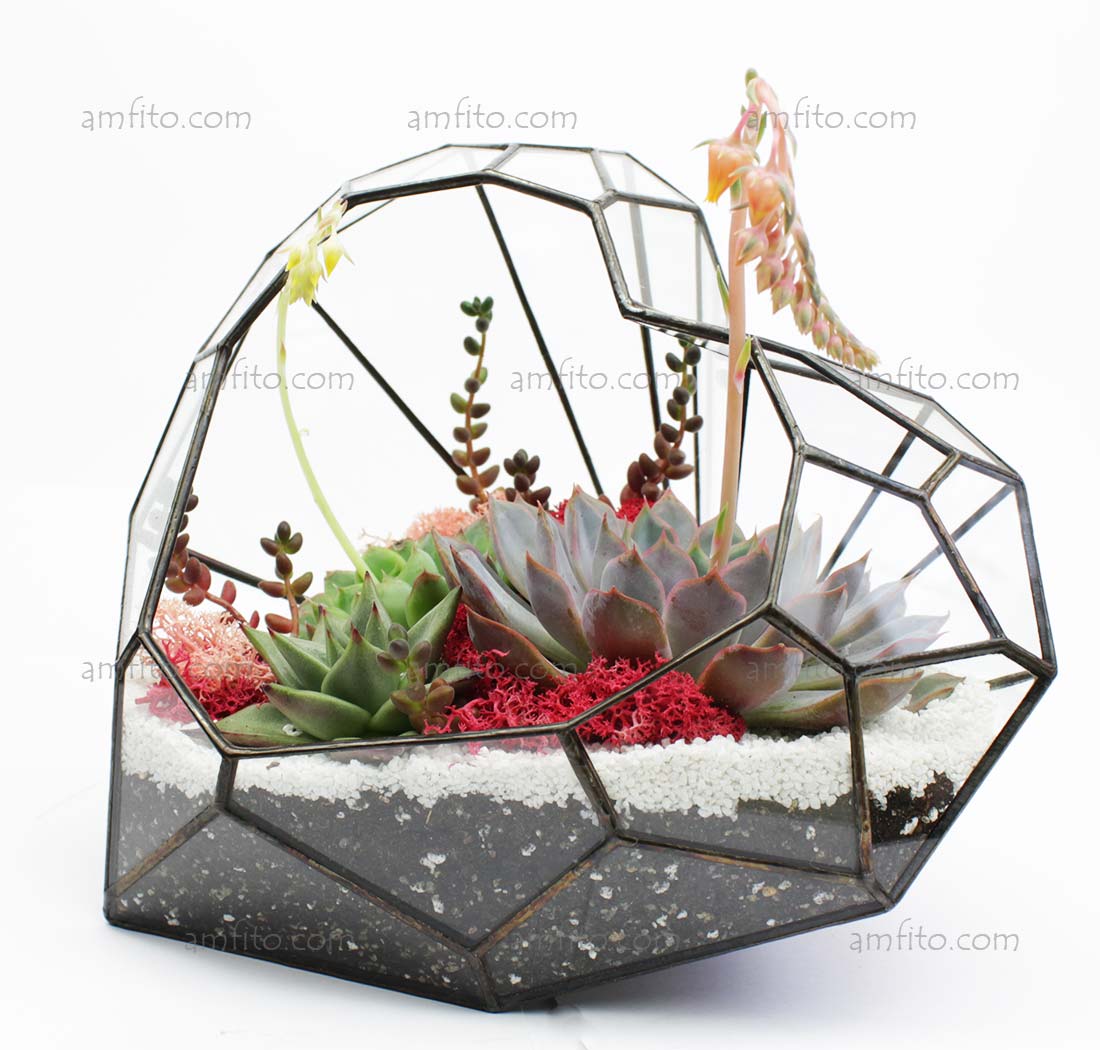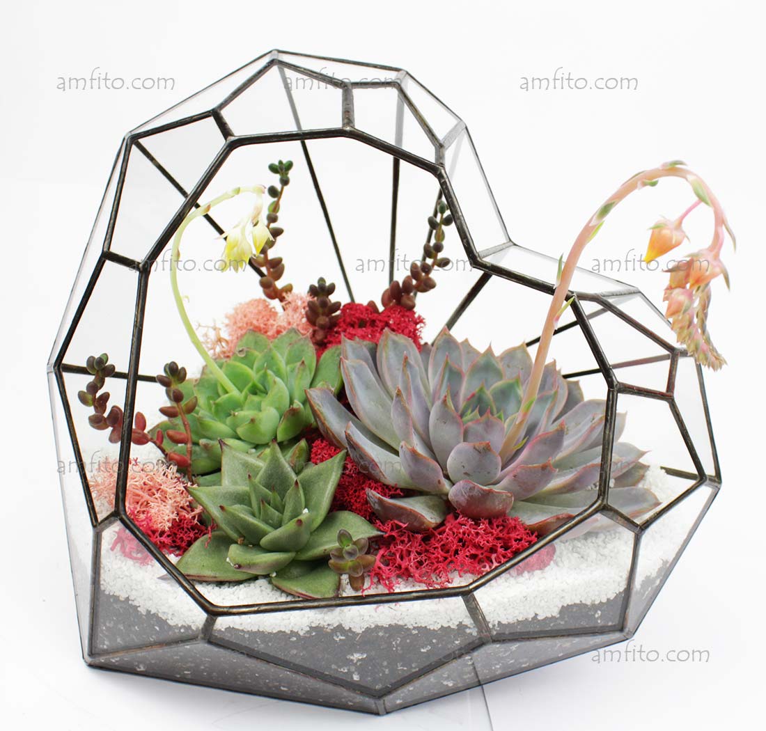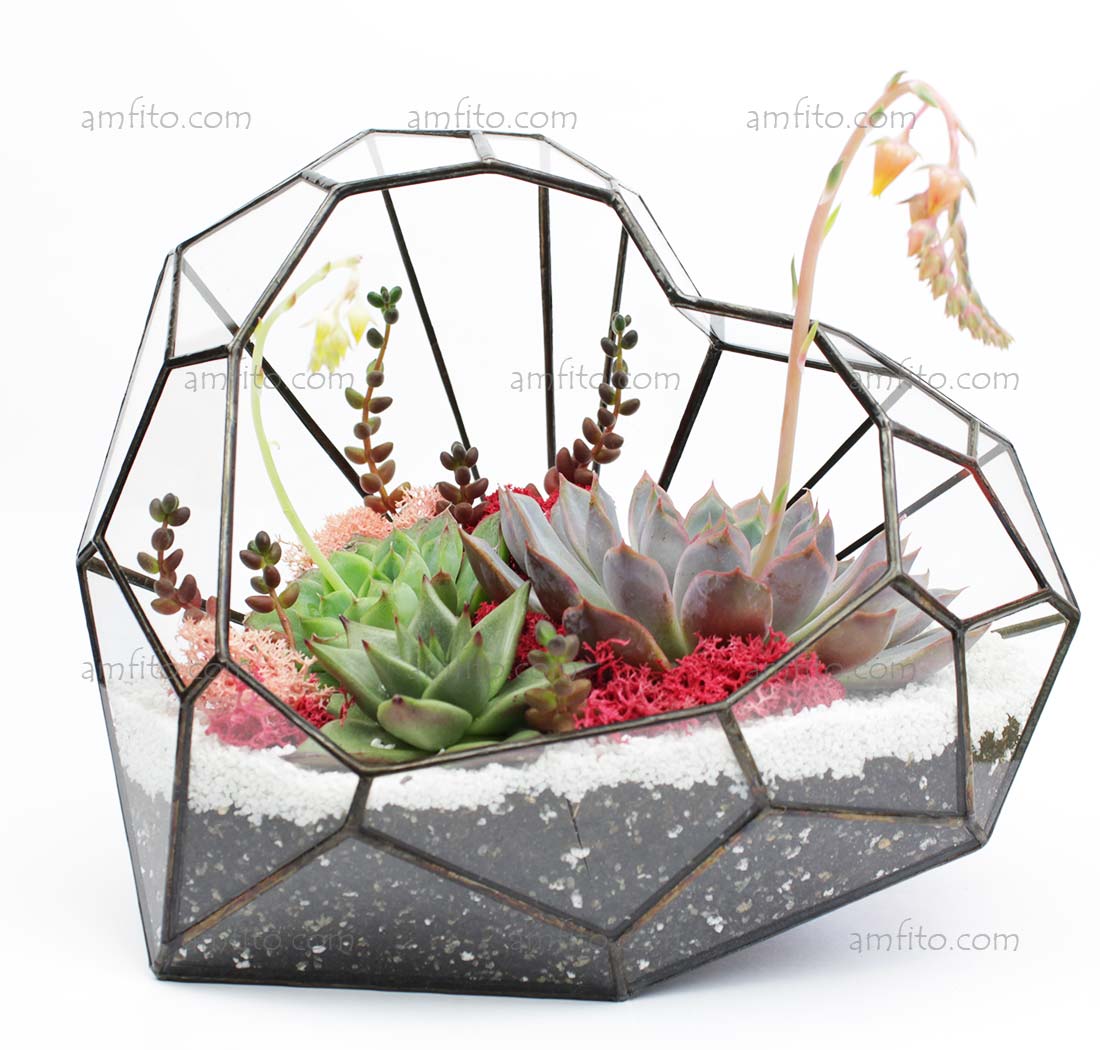 Геометрический флорариум "Heart-criatal optima" с суккулентами