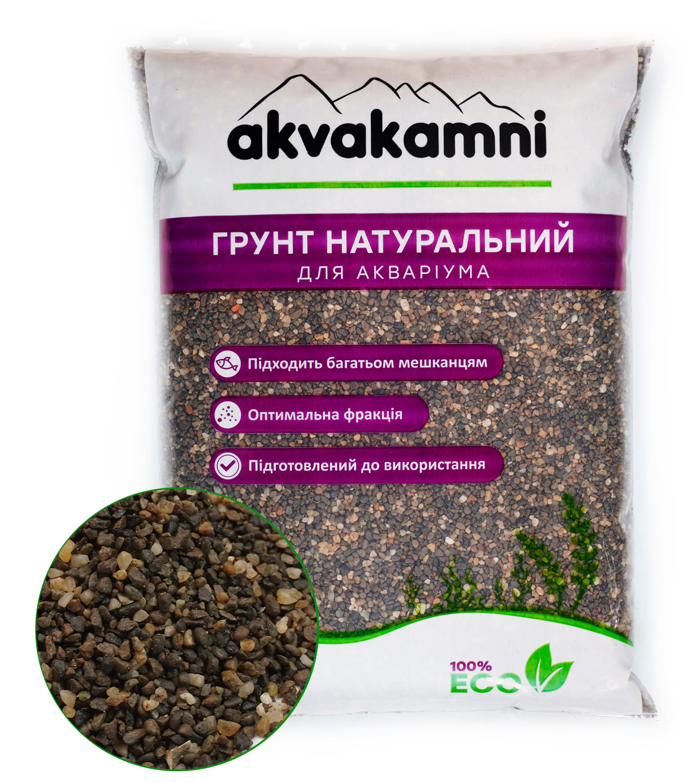 Природный грунт для аквариума. Приятный цвет, точная фракция, окатанные края безопасные для рыб и растений.