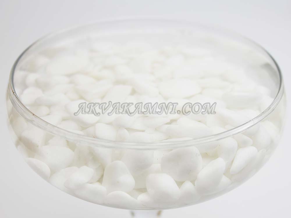 Грунт имеет красивый белоснежный цвет и окатанную форму. Галька из мрамора, поэтому подойдет для аквариумов с непривередливыми видами растений или без растений.