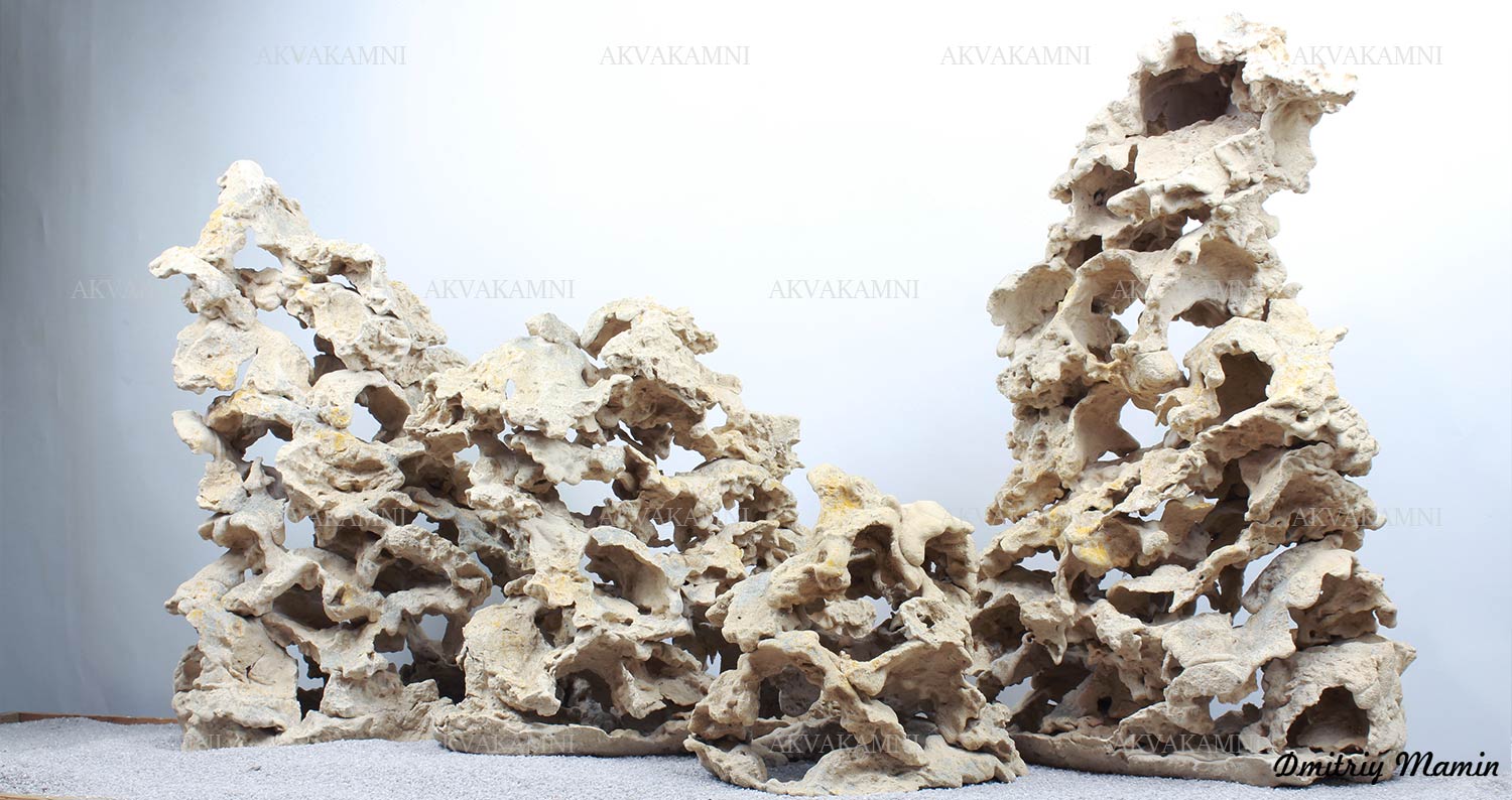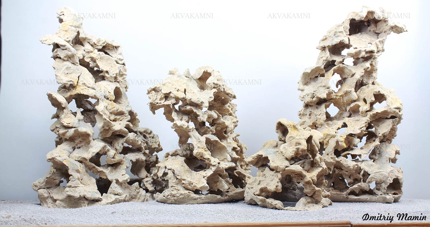 Композиция создана для аквариума с цихлидами. Камень "Кенийский" ручной работы. Создан из нейтральных материалов. В основе состава лежит кварцевый песок и белый цемент.