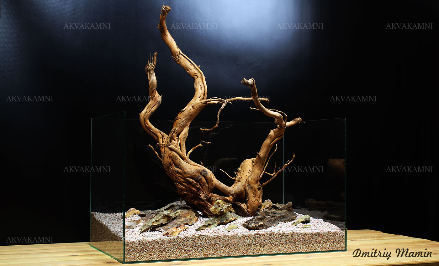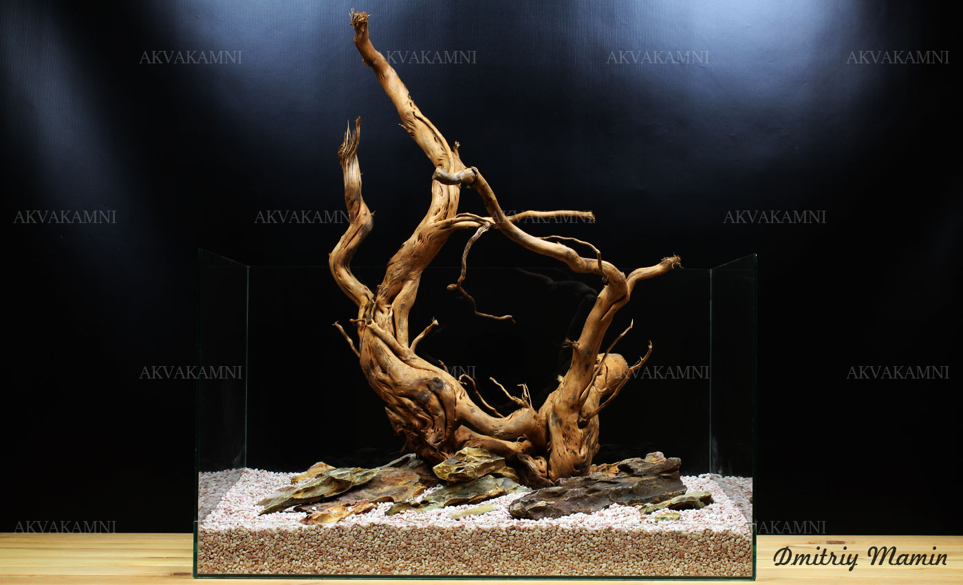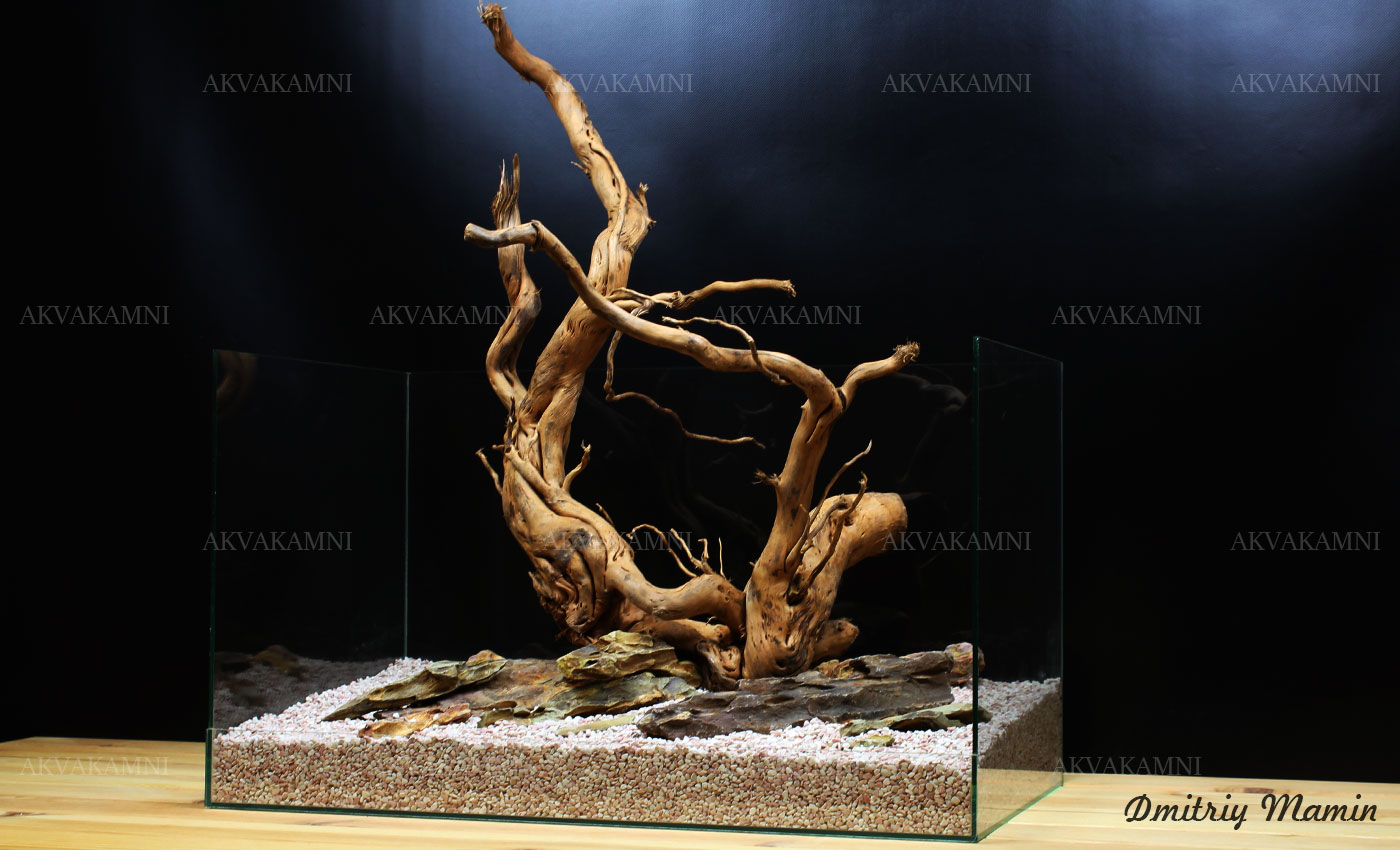 Камни и Корни - замечательное сочетание. Ветвистая коряга является изюминкой композиции.