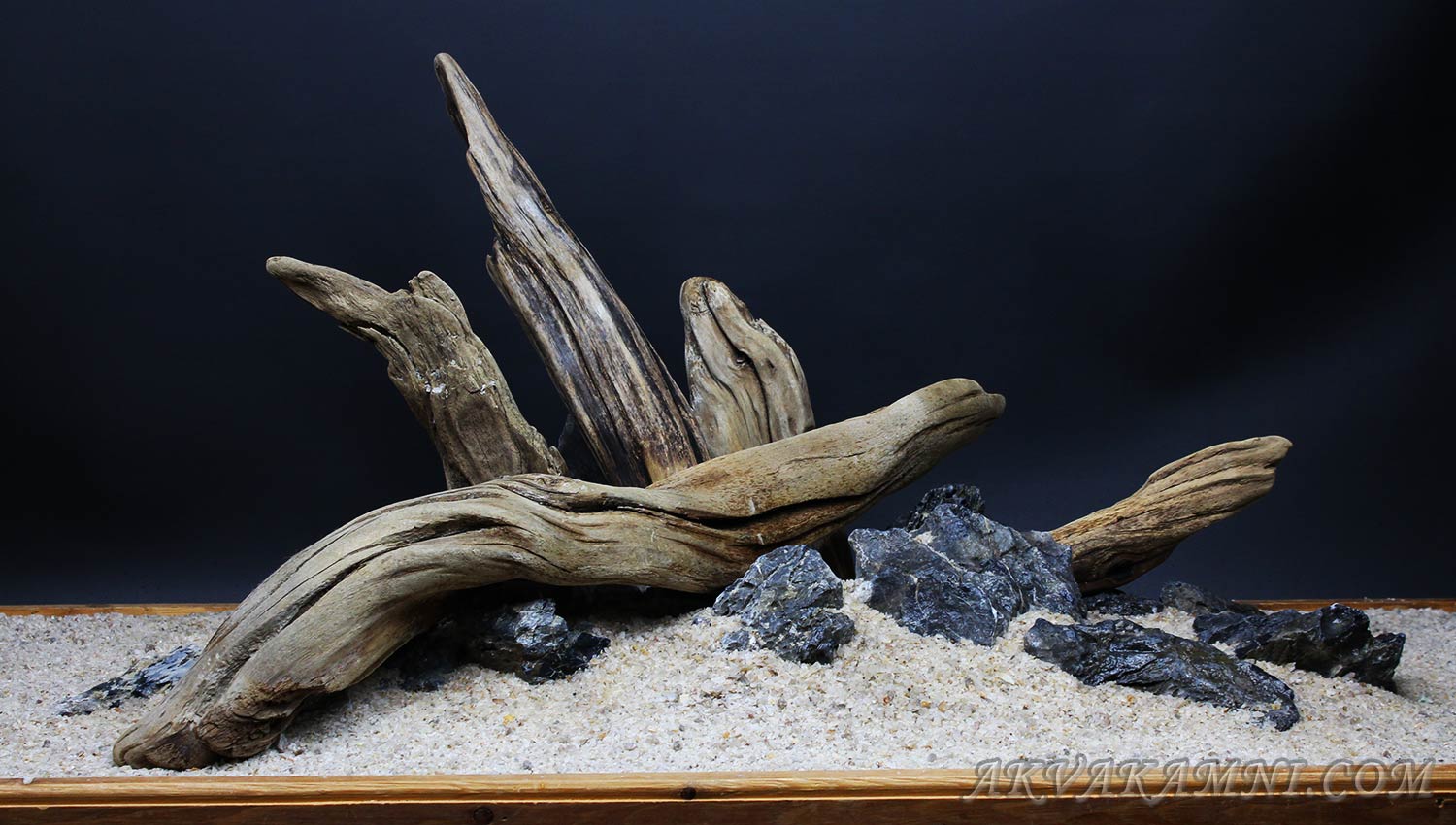 Композиция из натурального красивейшего камня Черного кварца. Коряги уникальны в своем роде. Привезены из северной Америки, где долгое время находились в озере на высоте 4000м. Коряги вымочены, перед использованием можно не обрабатывать.