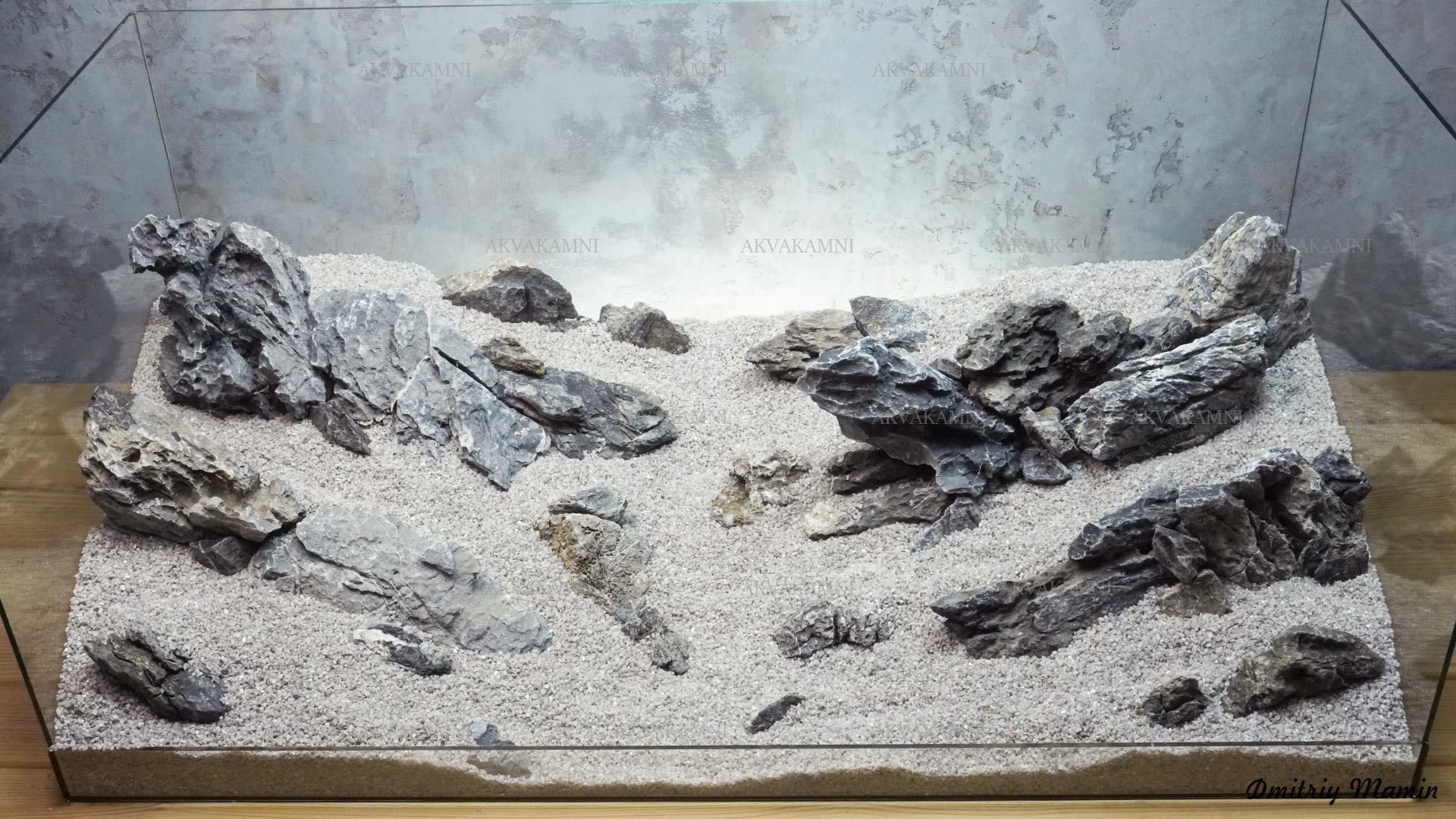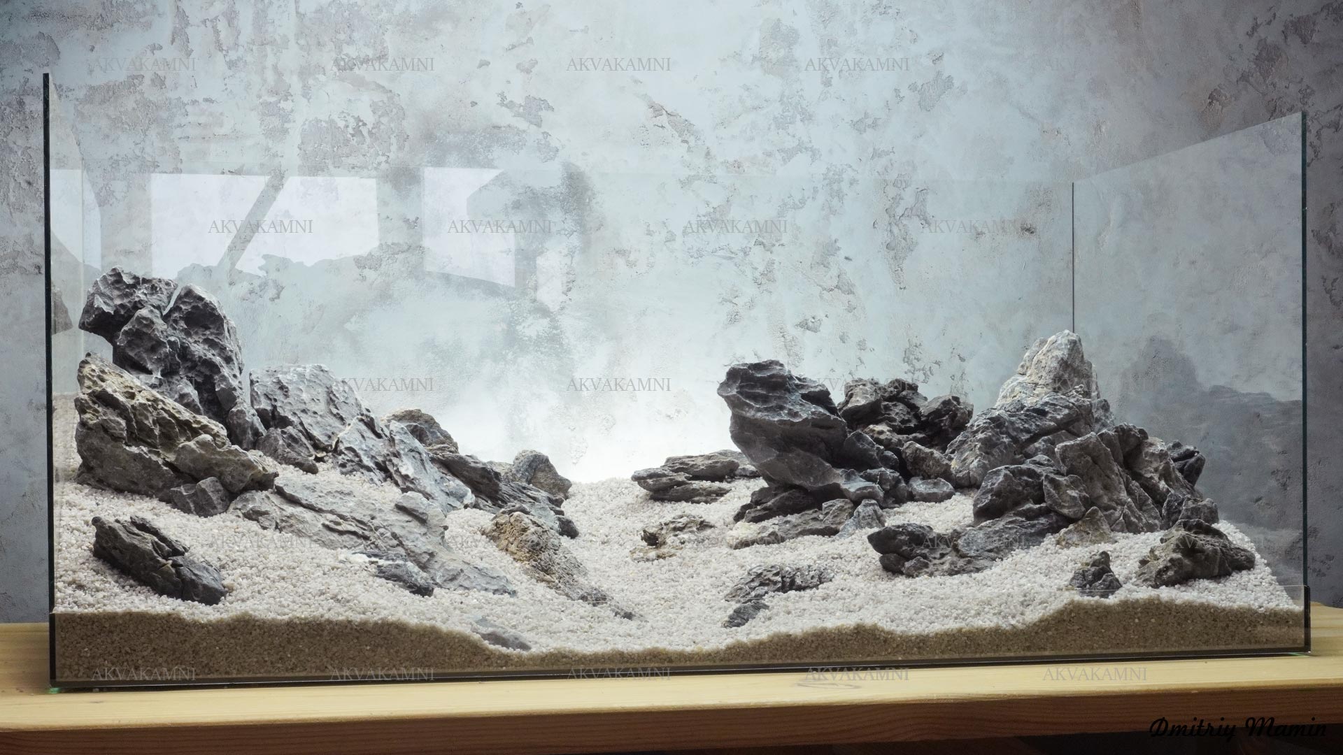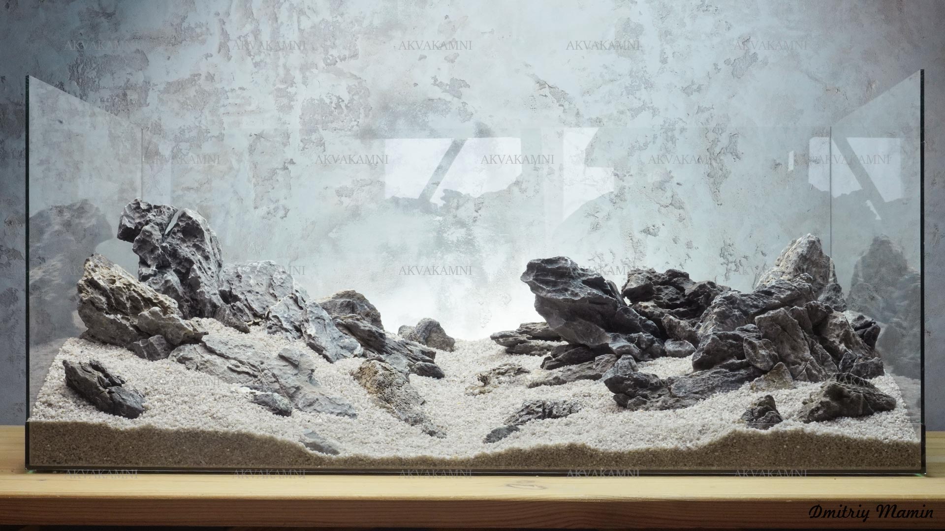 Композиція з чорного кварцу. На розміри акваріума 90х45х45см.