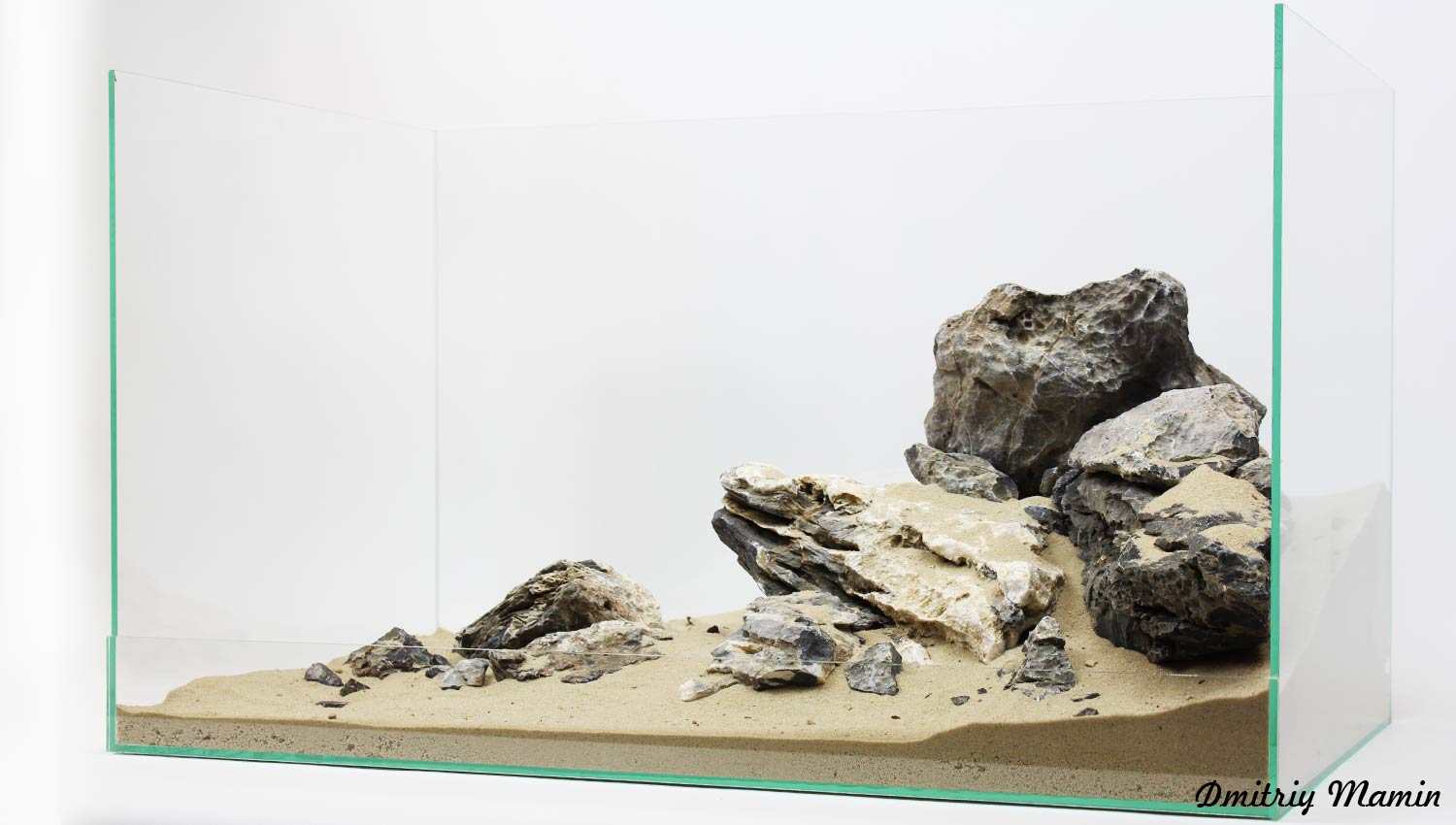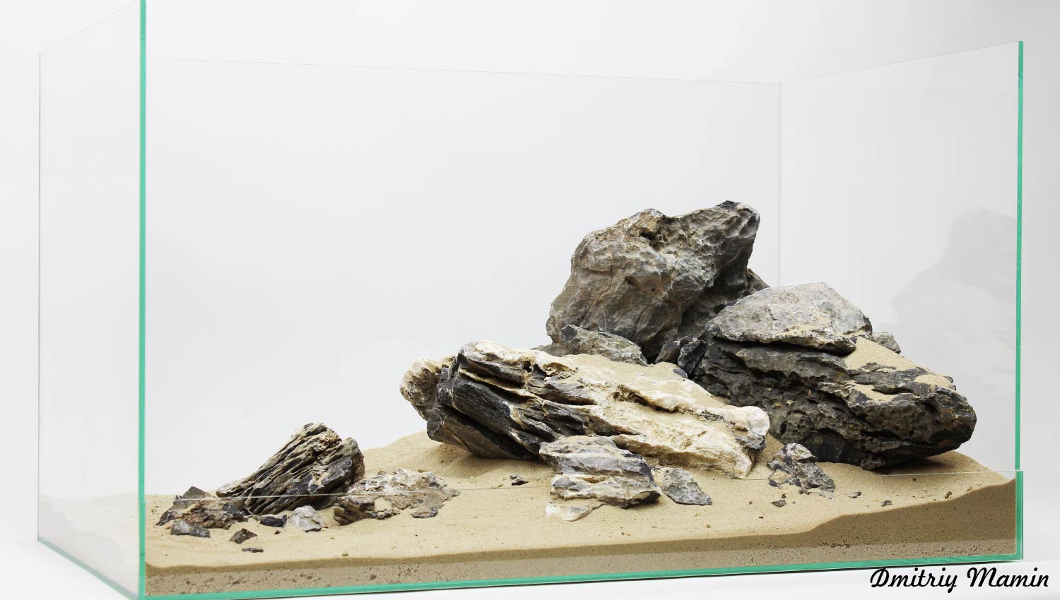 Невероятно красивый и редкий для Украины камень. Имеет все необходимые параметры для использования в травниках. Композиция подойдет для аквариума от 60 литров.