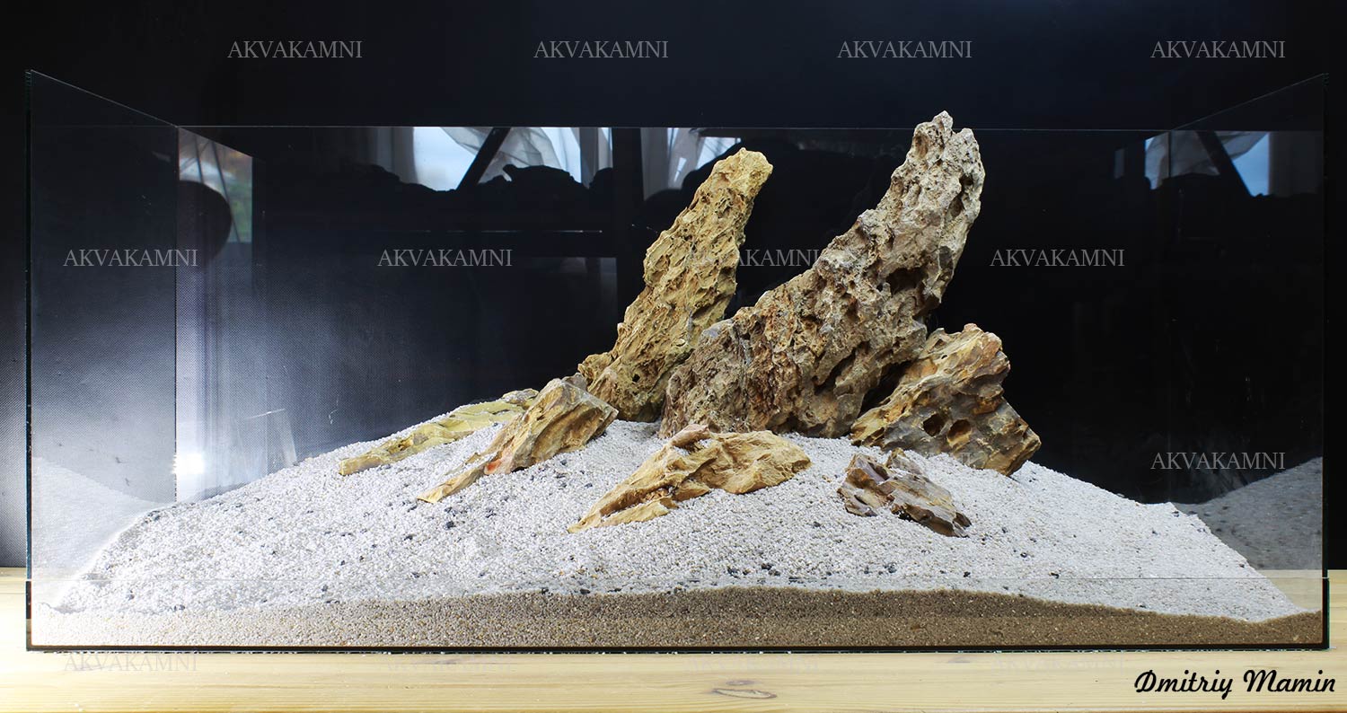 Размеры композиции: 65х30х32h. Для аквариума, минимум от 120 литров. Оптимальная длина аквариума для этой композиции 65-85см.