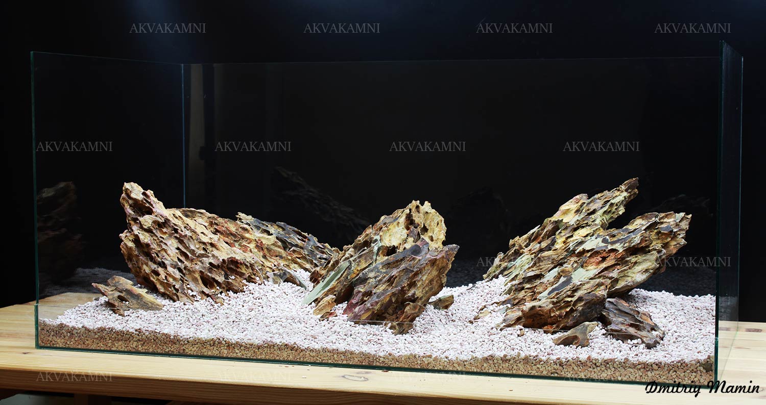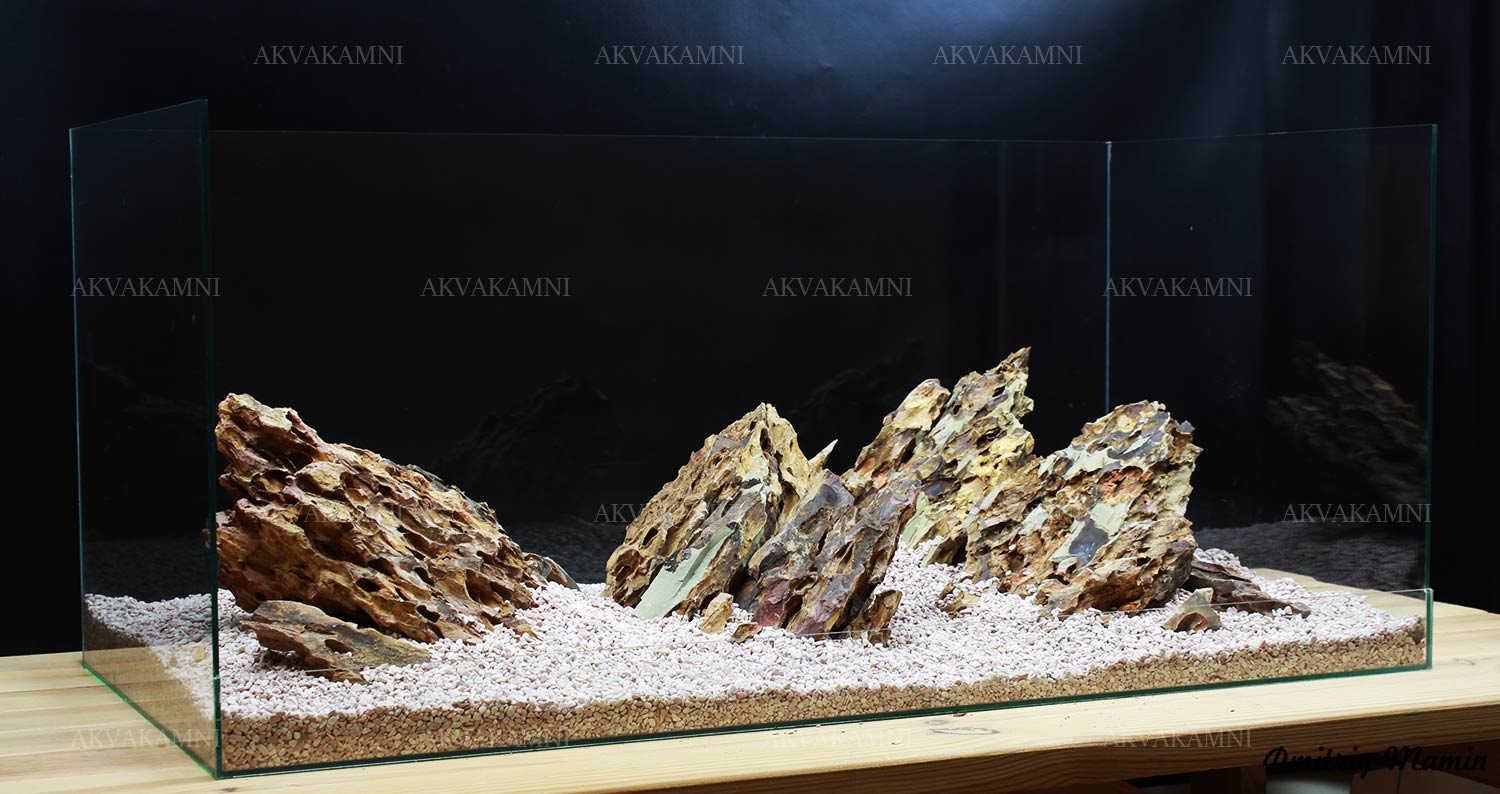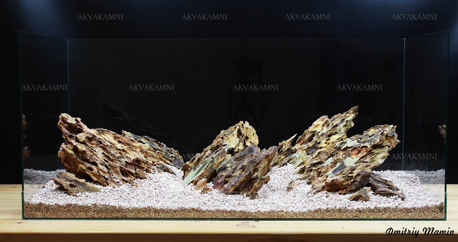 Размеры композиции: 80х35х20h. Для аквариума, минимум от 120 литров. Оптимальная длина аквариума для этой композиции 90-120см.