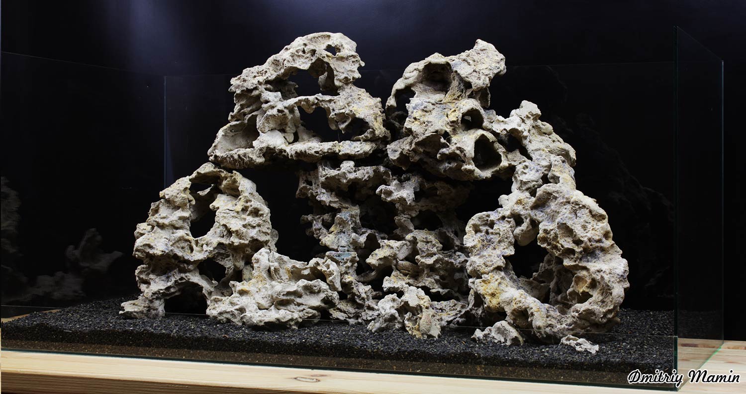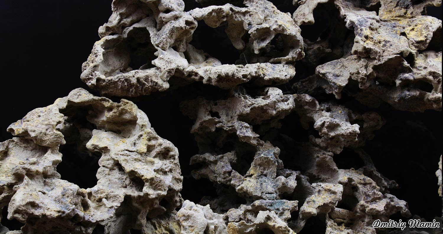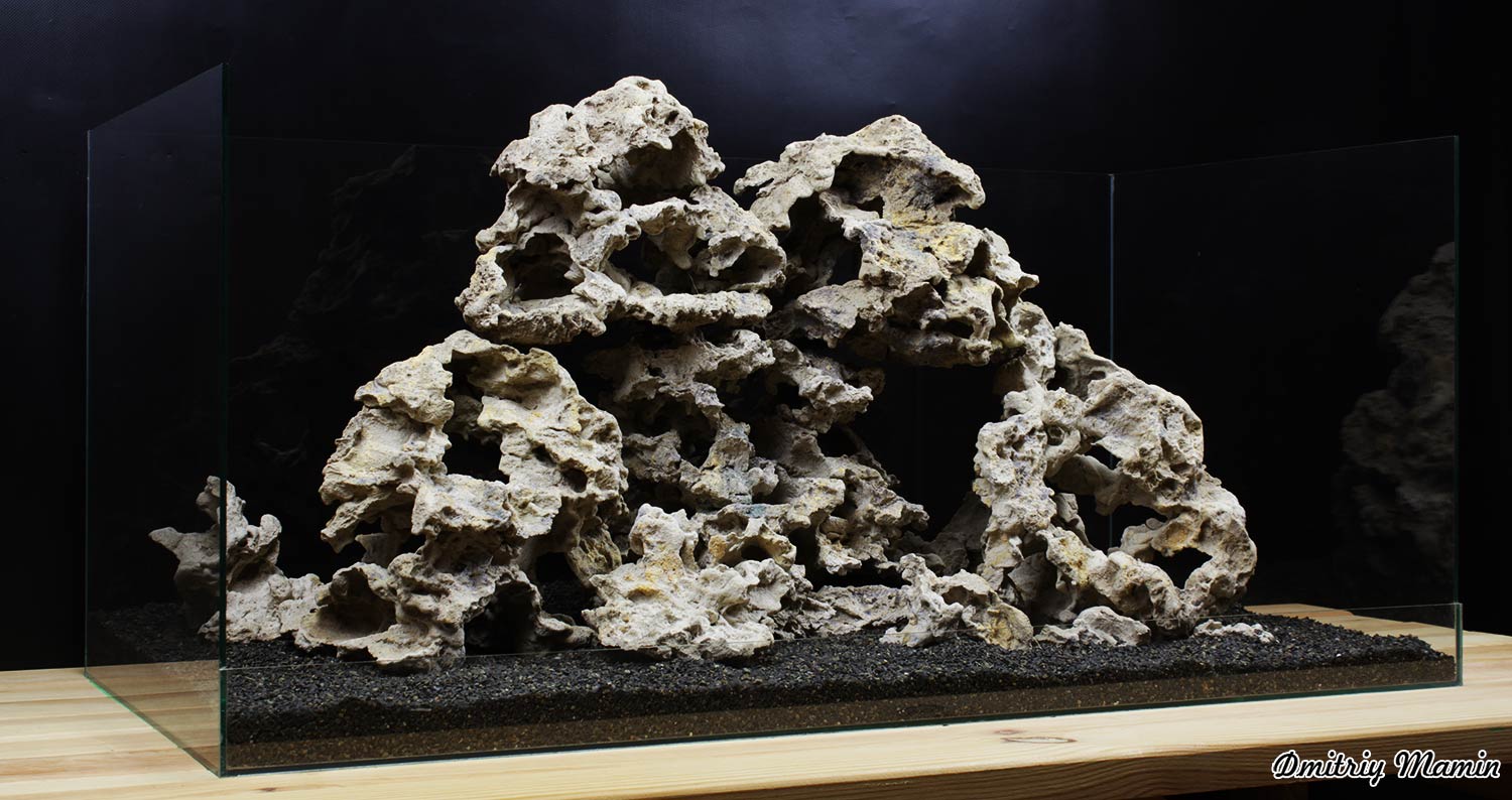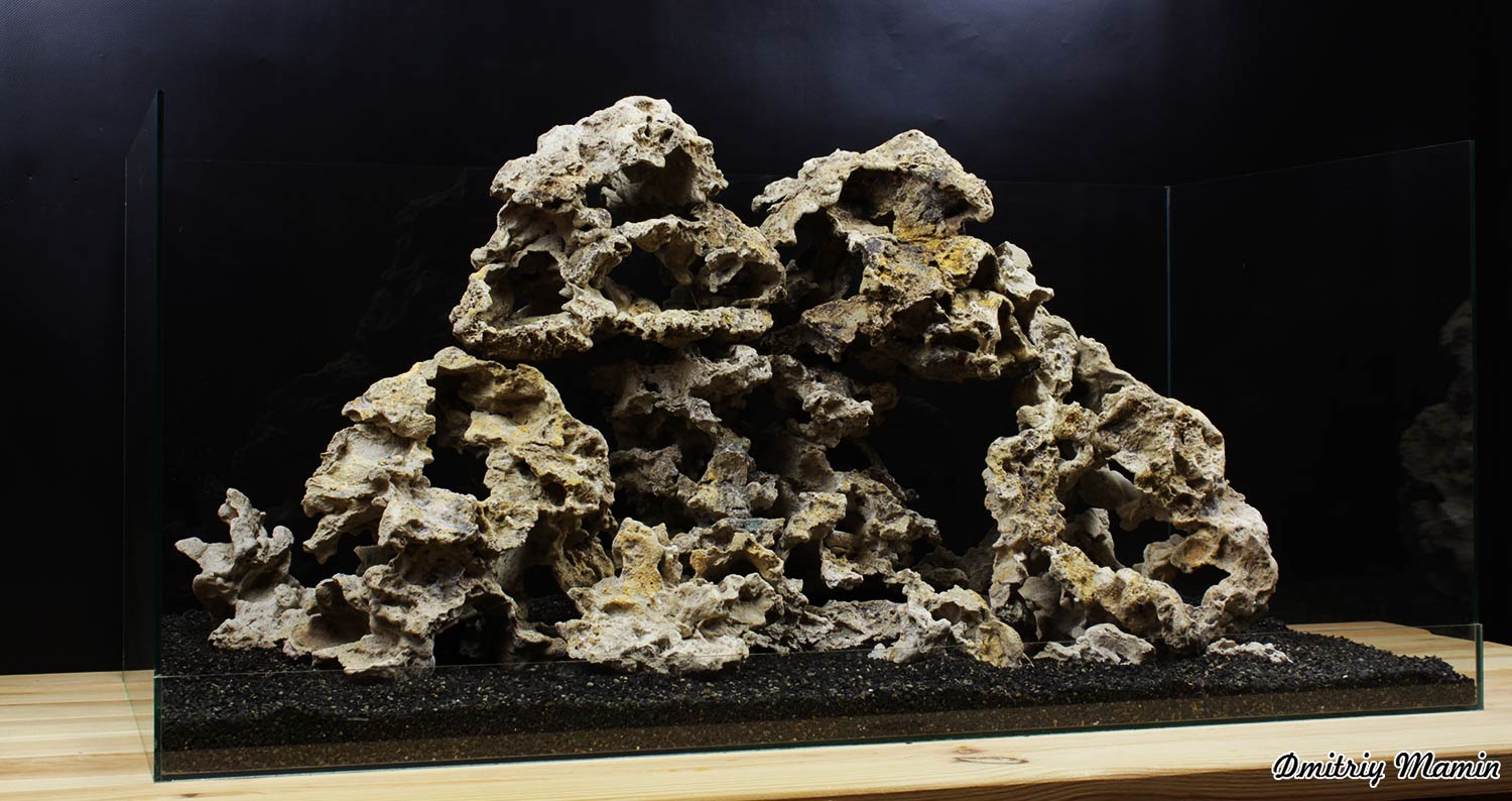 Композиция создана для аквариума с цихлидами. Камень "Кенийский" ручной работы. Создан из нейтральных материалов. В основе состава лежит кварцевый песок и белый цемент.