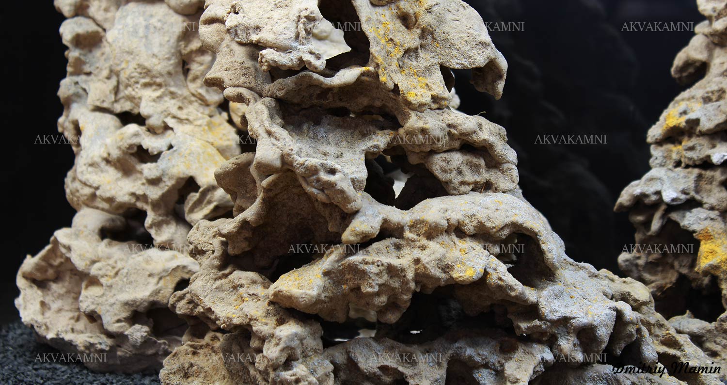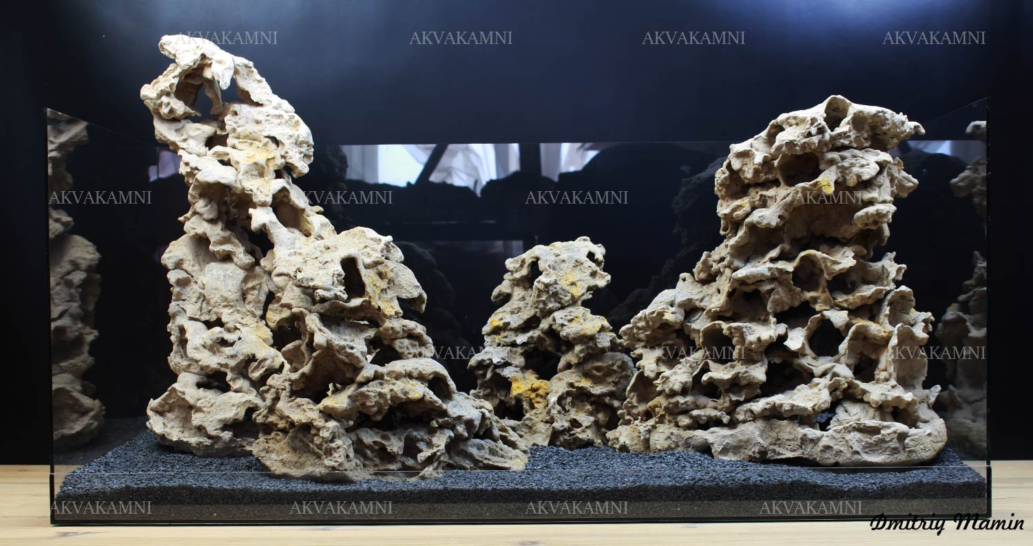 Композиция создана для аквариума с цихлидами. Камень "Кенийский" ручной работы. Создан из нейтральных материалов. В основе состава лежит кварцевый песок и белый цемент.