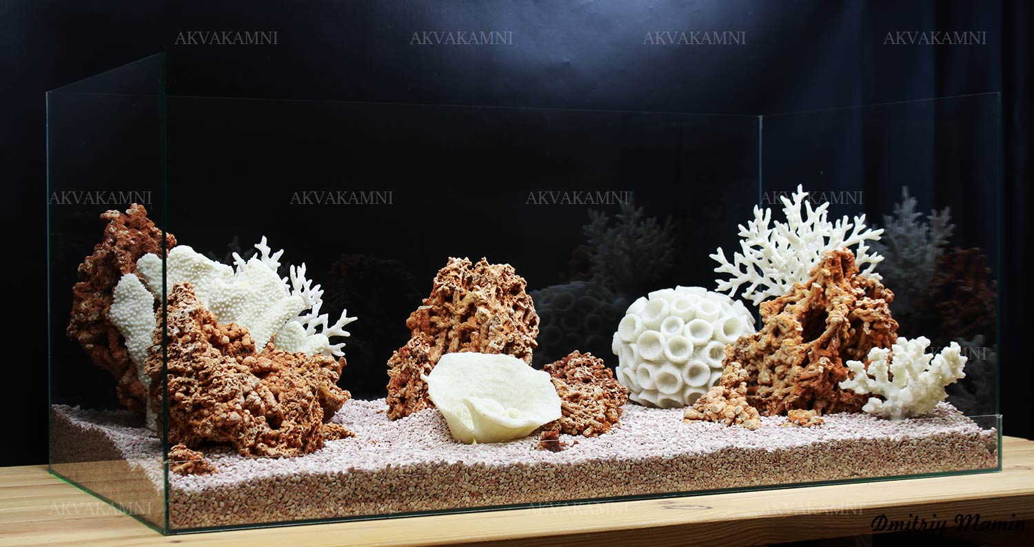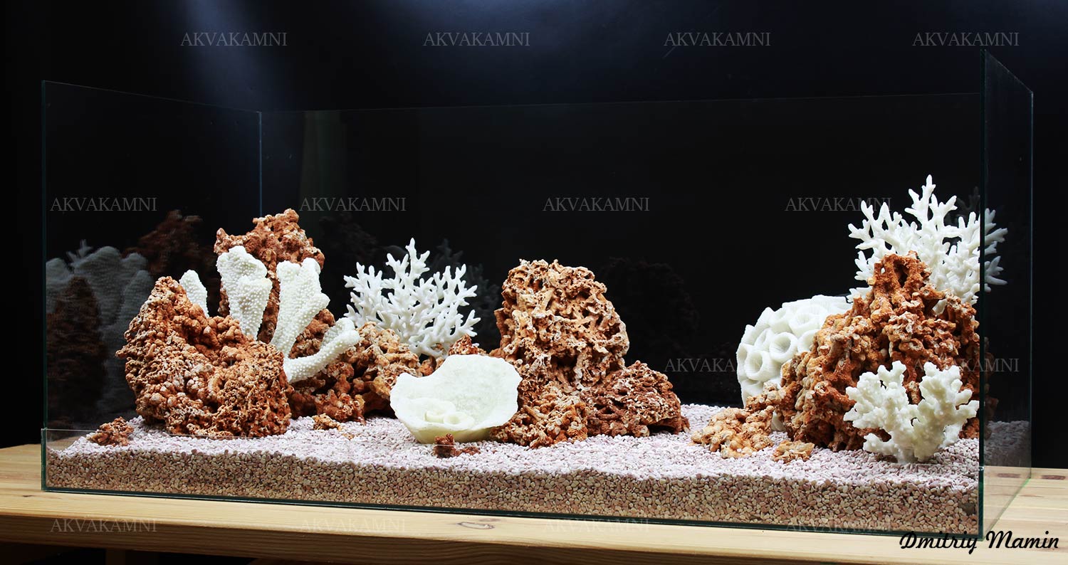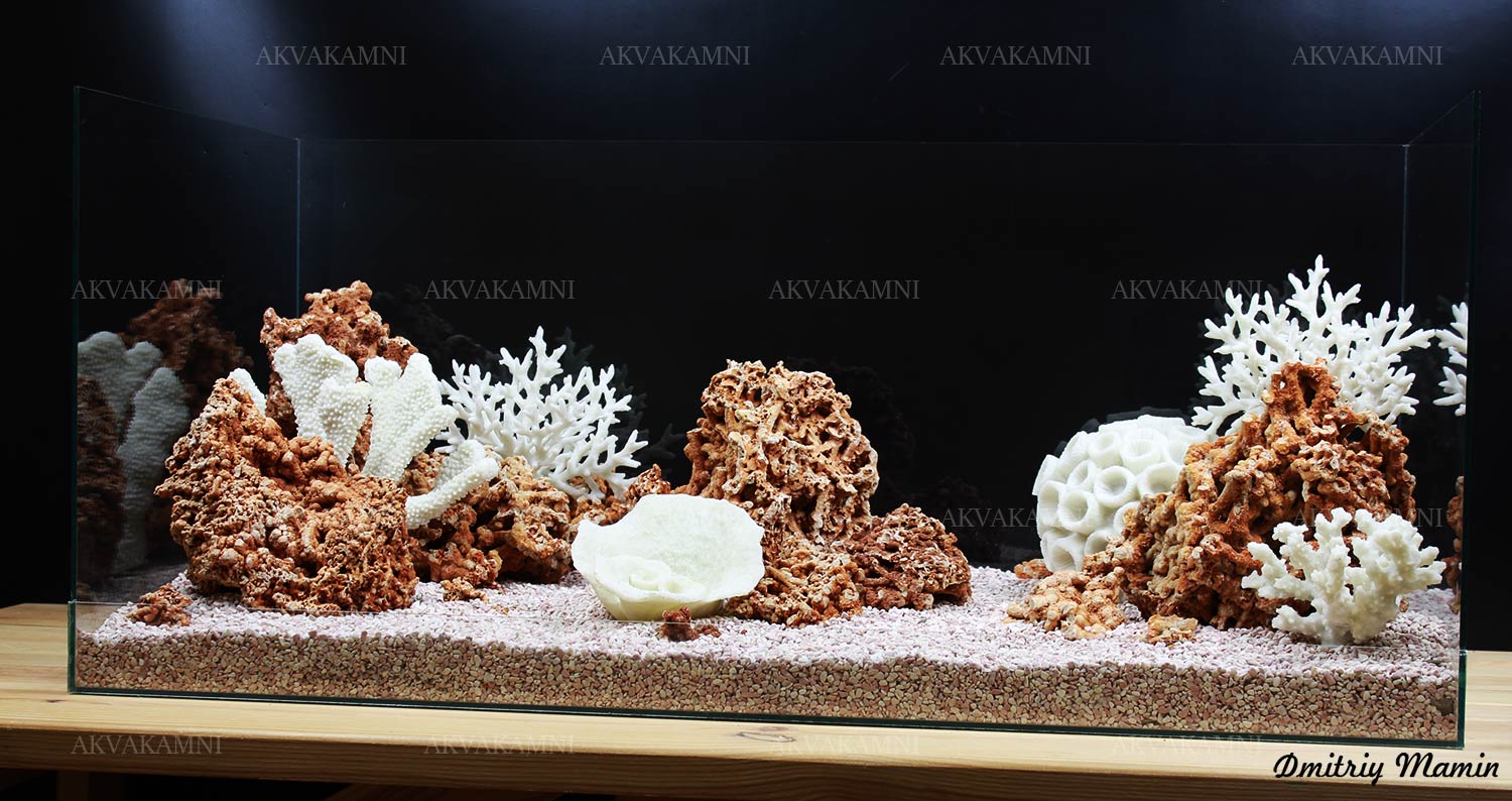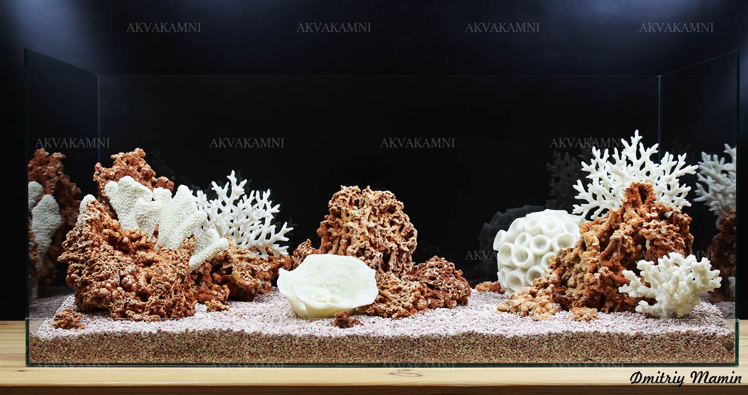 Размеры композиции: 90х32х30h. Для аквариума, минимум от 120 литров. Оптимальная длина аквариума для этой композиции 90-120см.