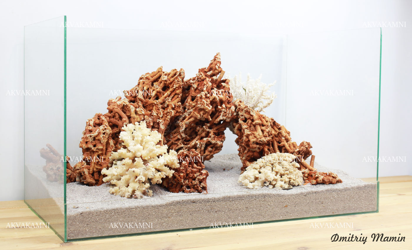 Размеры композиции: 60х28х25h. Для аквариума, минимум от 60 литров. Оптимальная длина аквариума для этой композиции 60-100см.