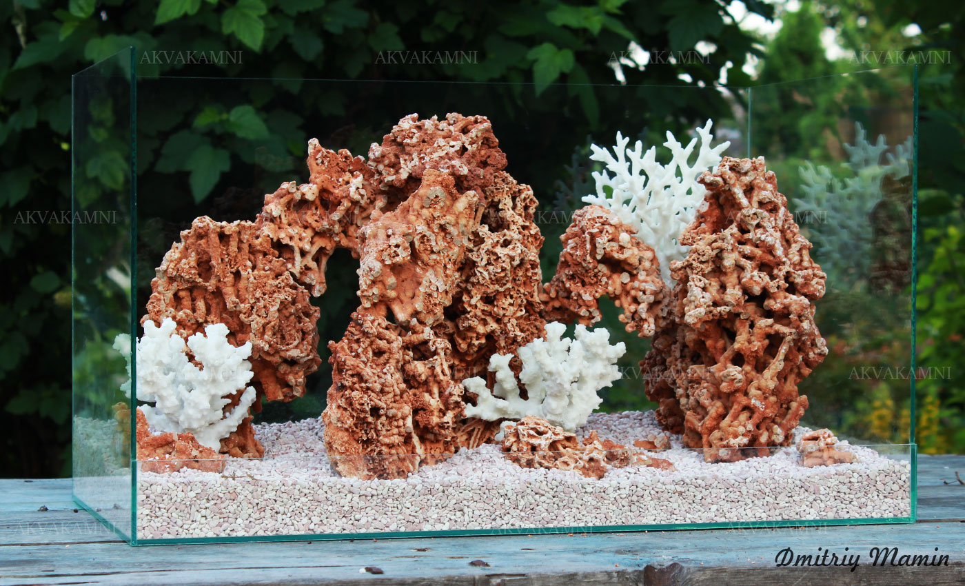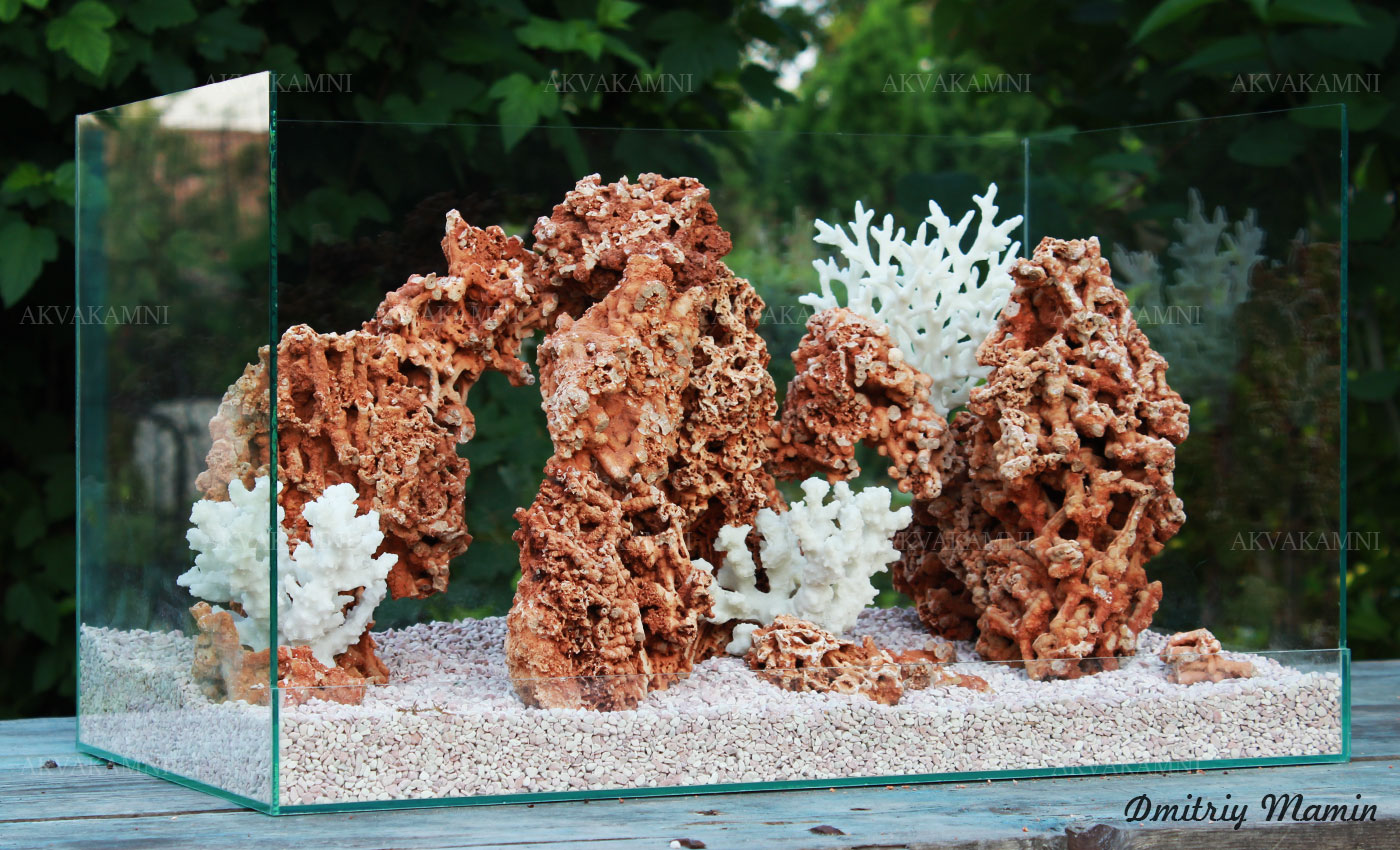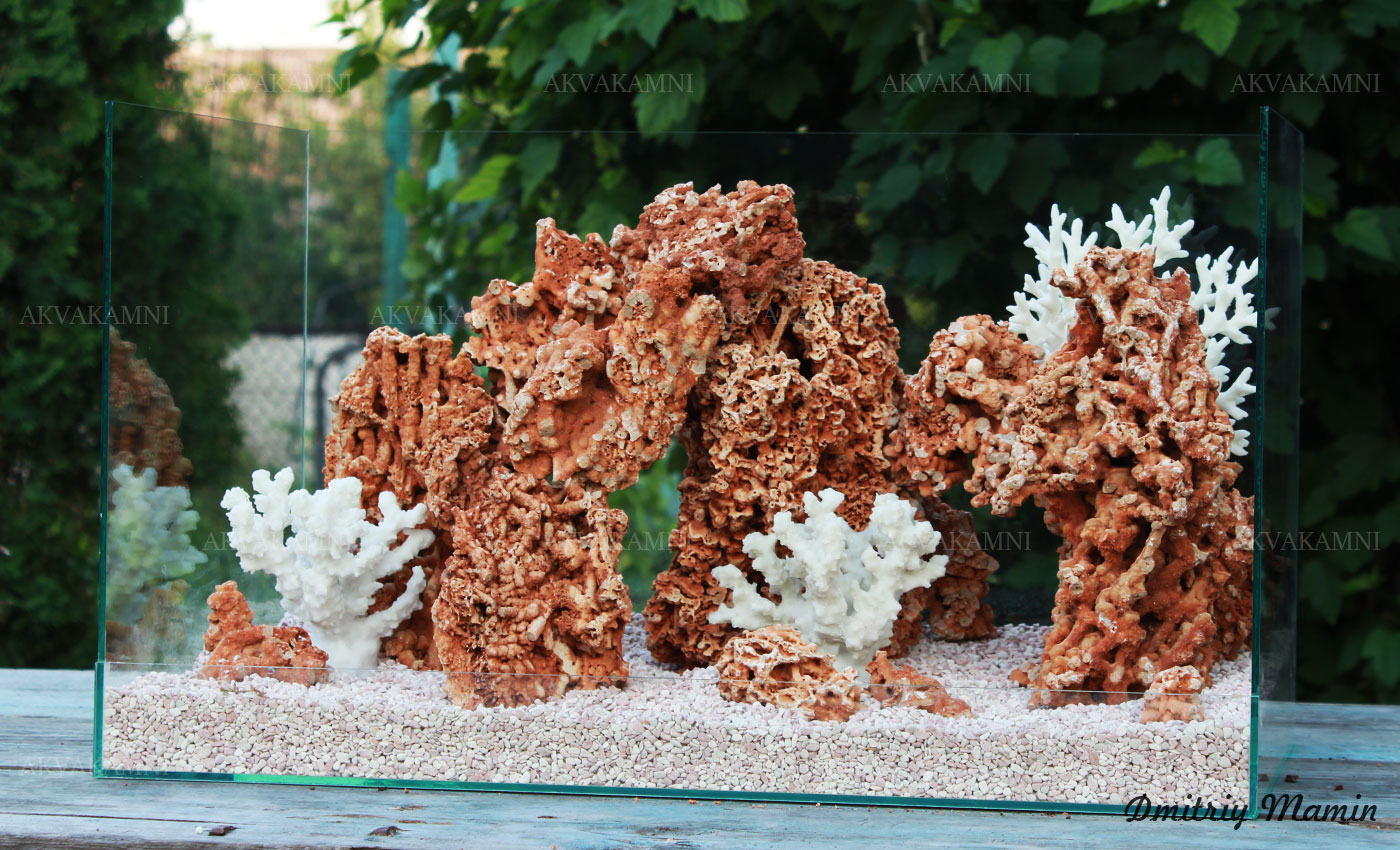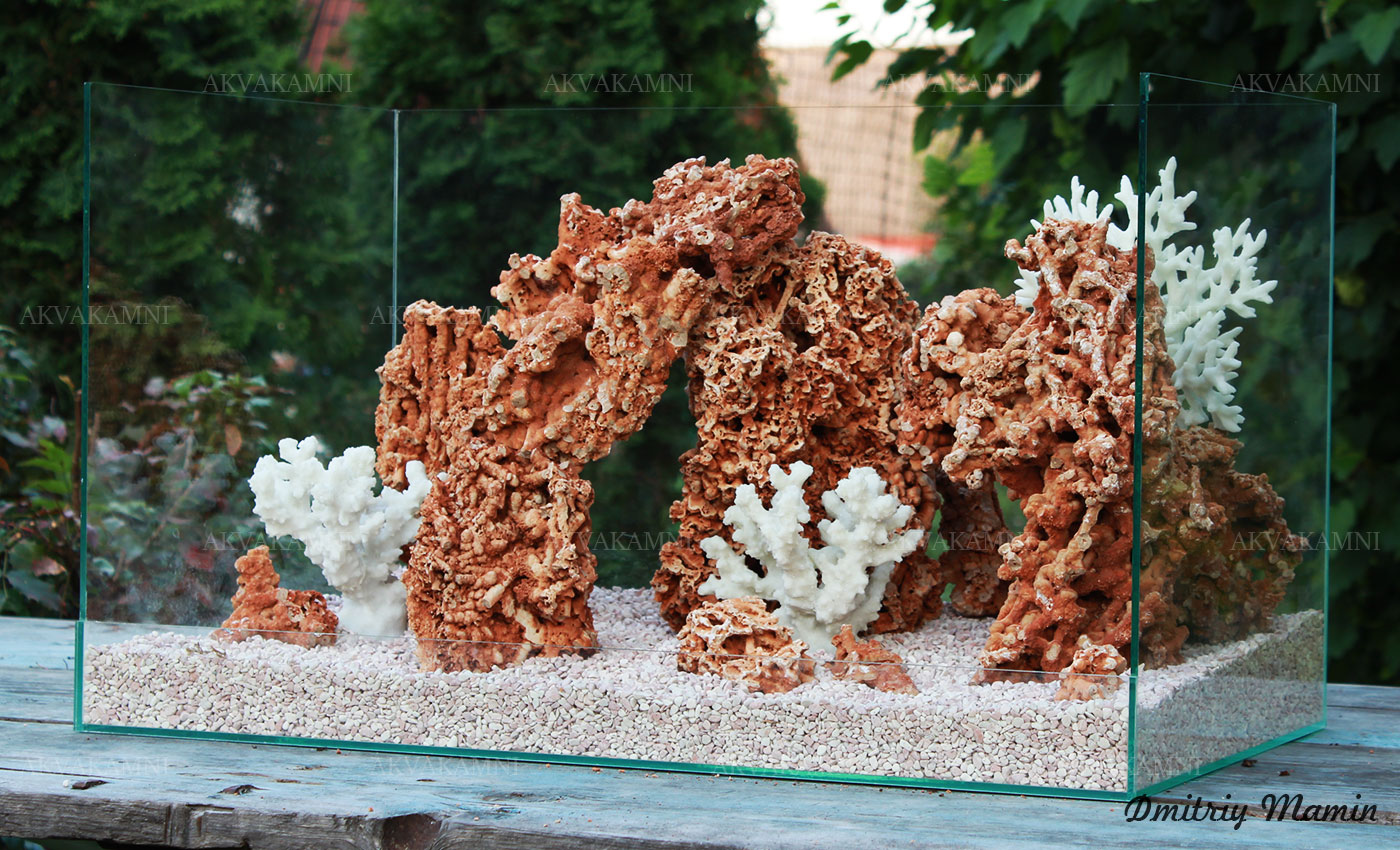 Размеры композиции: 60х28х28h. Для аквариума, минимум от 70 литров. Оптимальная длина аквариума для этой композиции 70-100см.