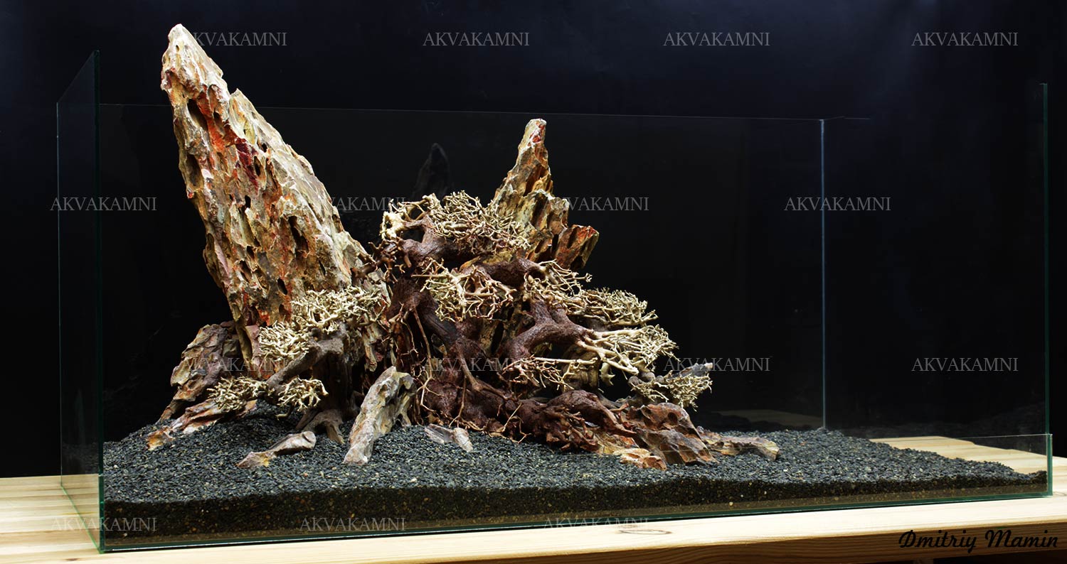 Размеры композиции: 70х32х48h. Для аквариума, минимум от 160 литров. Оптимальная длина аквариума для этой композиции 70-140см.