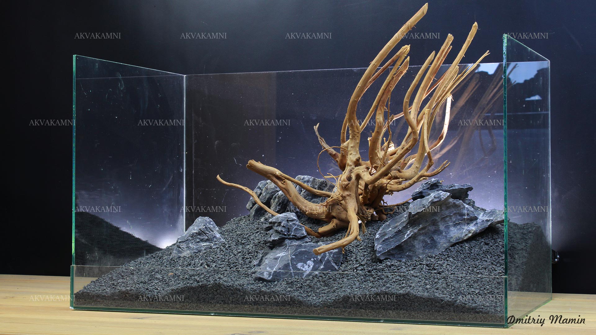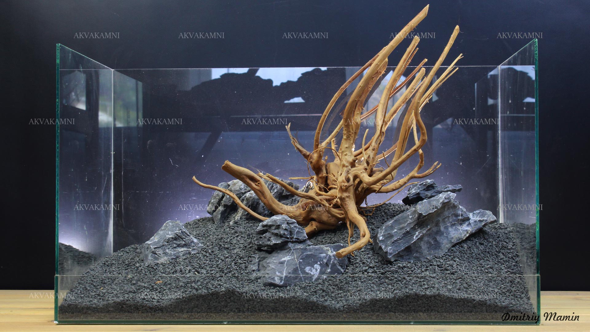 Композиция из камня и коряг. Перед использованием коряги достаточно просто промыть. Однако не забывайте, что коряги не будут сразу тонуть и первое время будут подкрашивать воду. В этом нет ничего страшного для рыб и воды, но если Вам не нравится цвет, коряги можно вымочить или проварить.