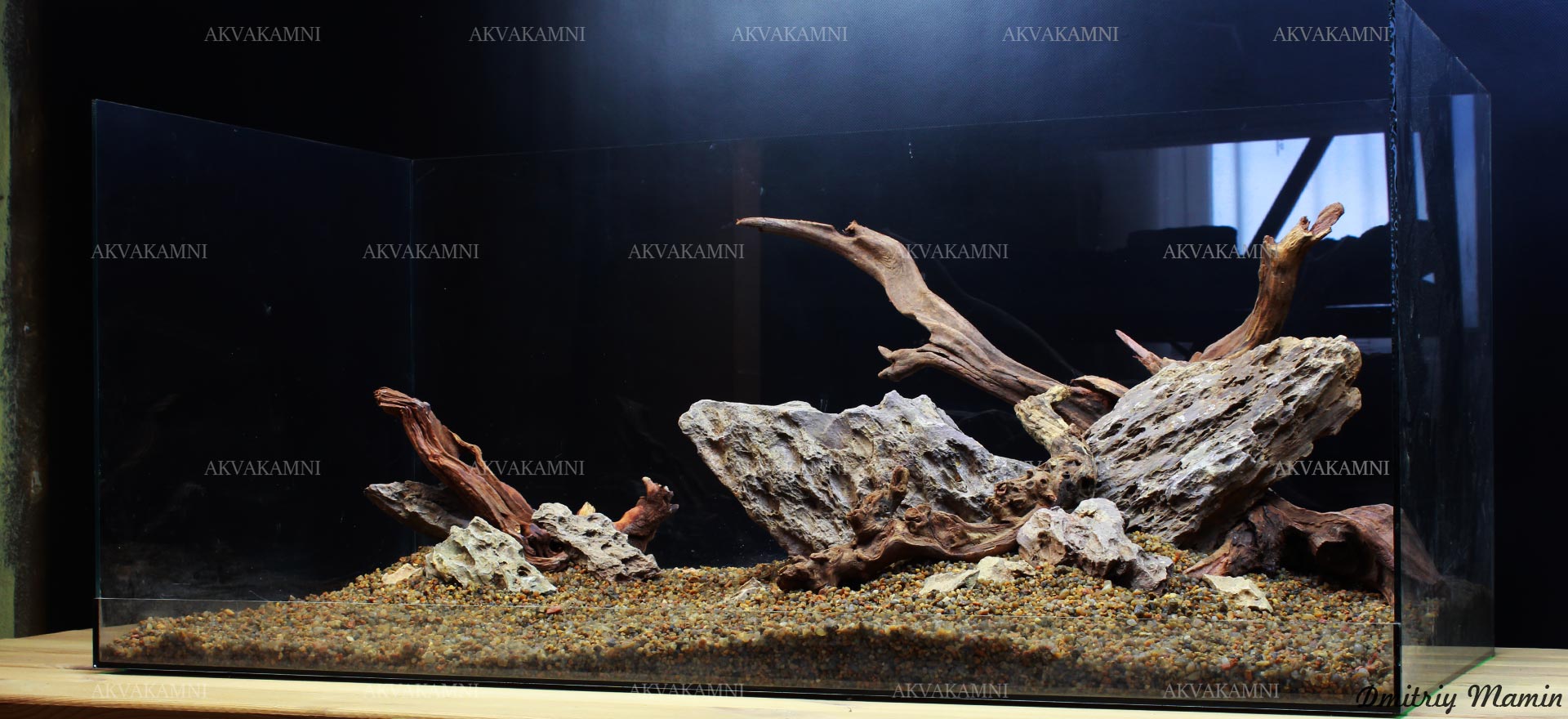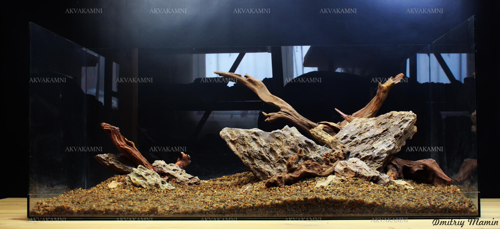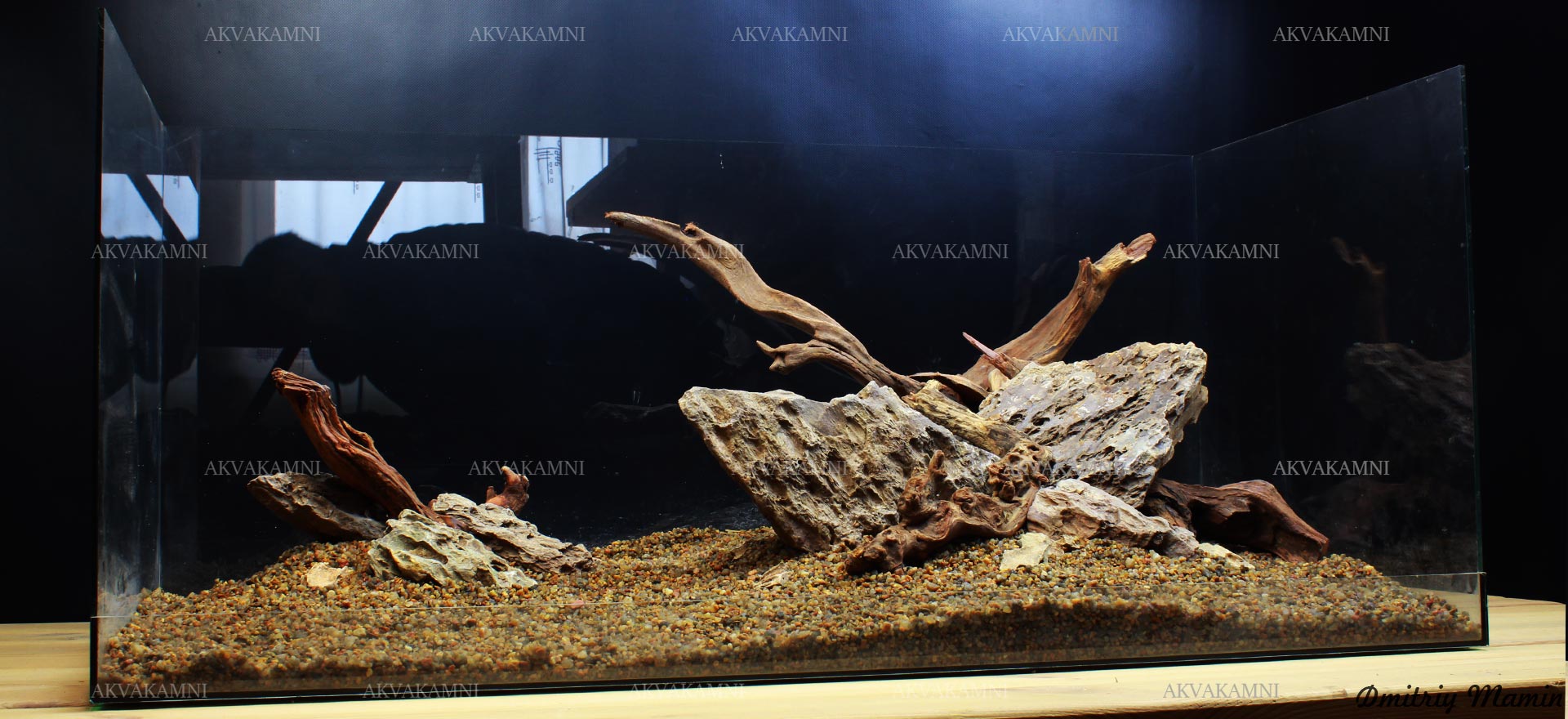 Композиция из камня и коряг. Перед использованием коряги достаточно просто промыть. Однако не забывайте, что коряги не будут сразу тонуть и первое время будут подкрашивать воду. В этом нет ничего страшного для рыб и воды, но если Вам не нравится цвет, коряги можно вымочить или проварить.