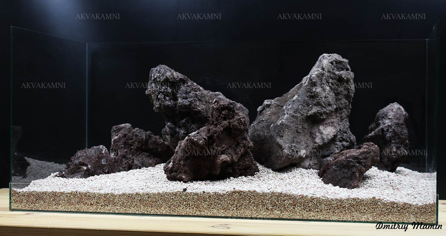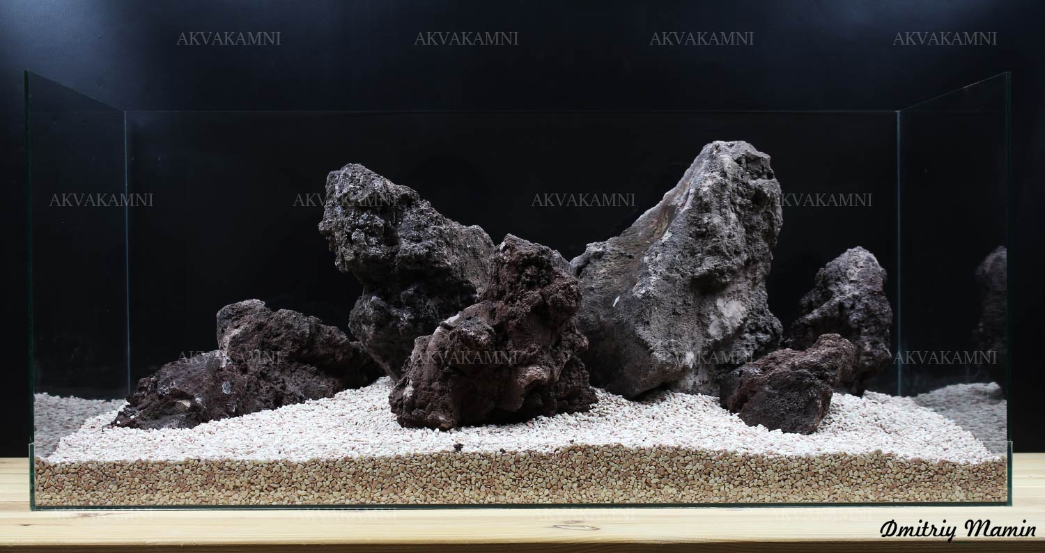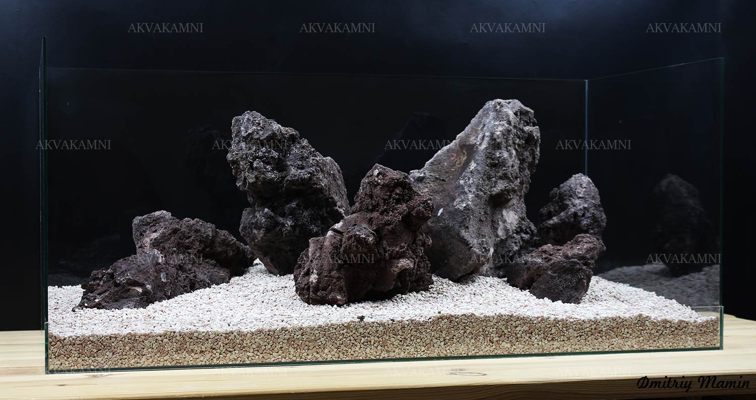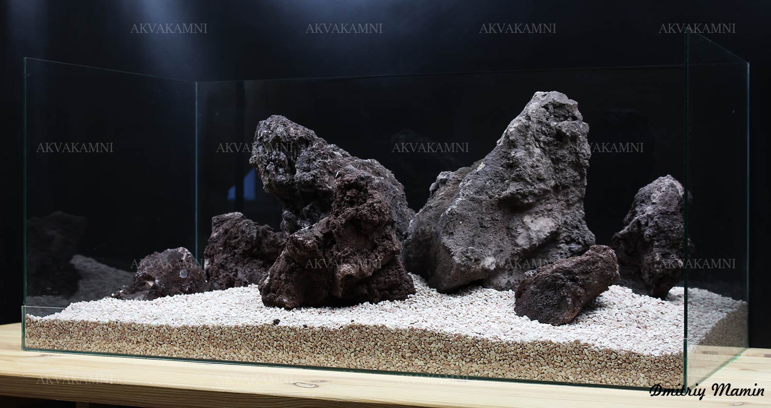 Композиция для аквариума из вулканической лавы . Композиция создана для аквариума длиной от 80 см.