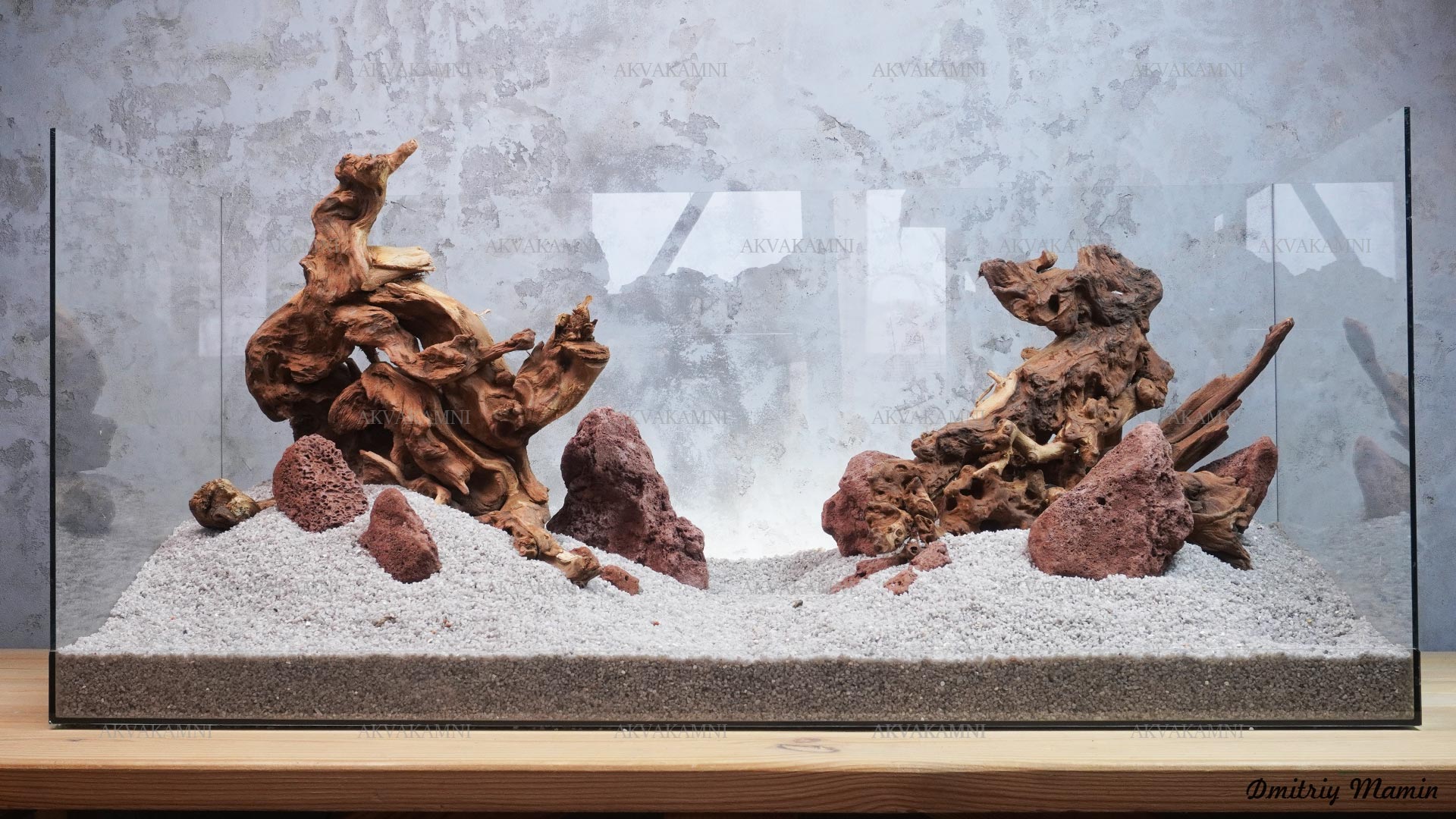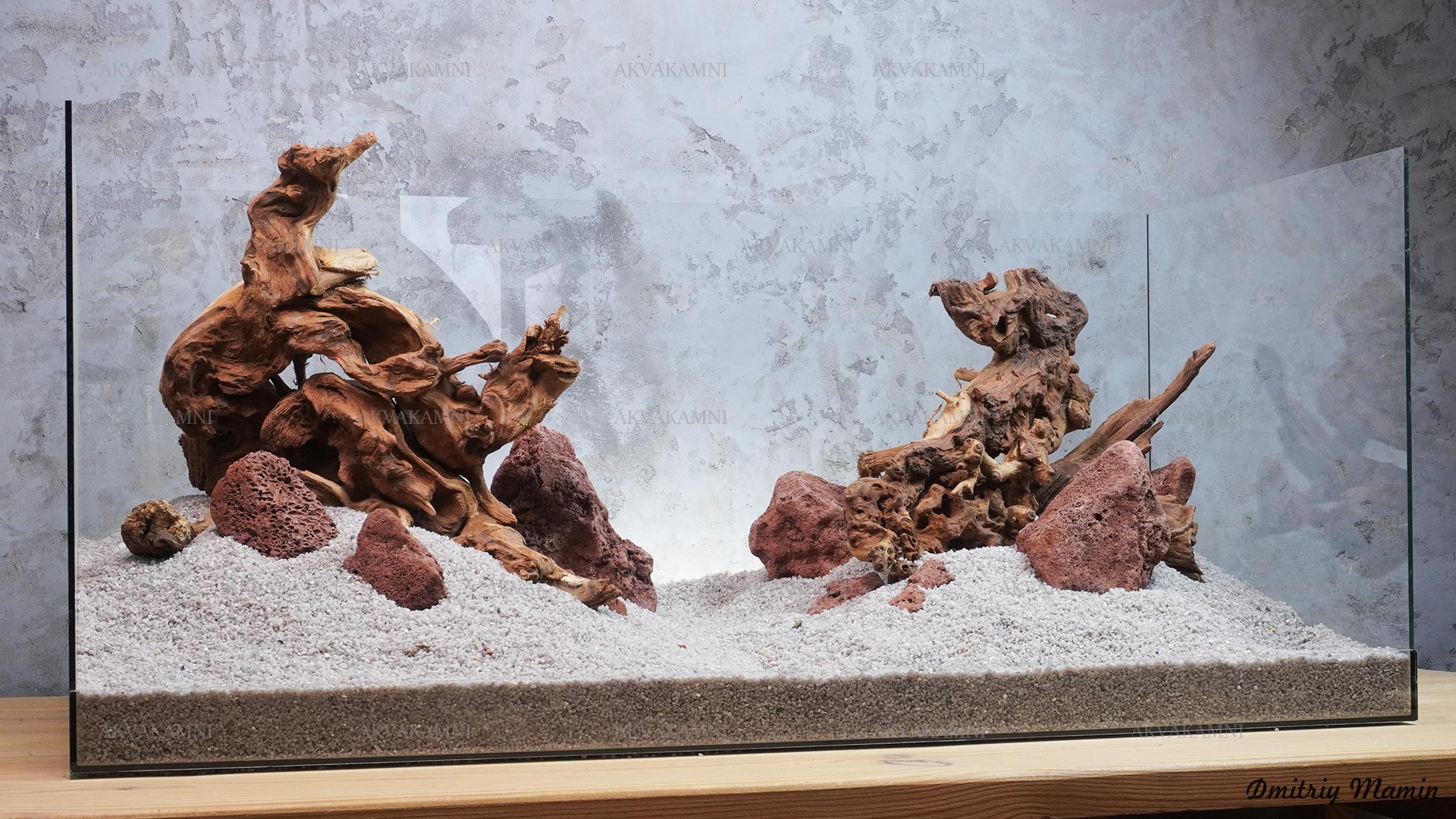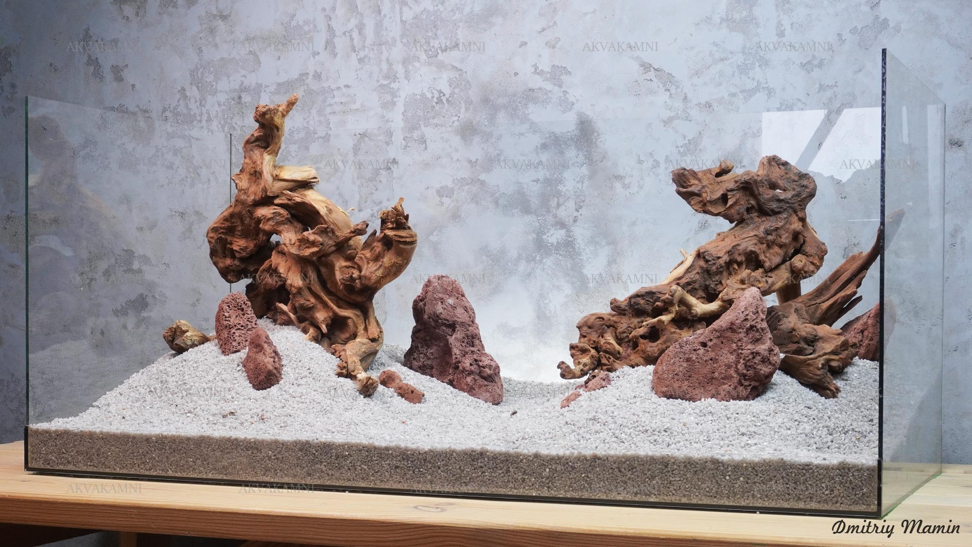 Композиция из камня и коряг. Перед использованием коряги достаточно просто промыть. Однако не забывайте, что коряги не будут сразу тонуть и первое время будут подкрашивать воду. В этом нет ничего страшного для рыб и воды, но если Вам не нравится цвет, коряги можно вымочить или проварить.