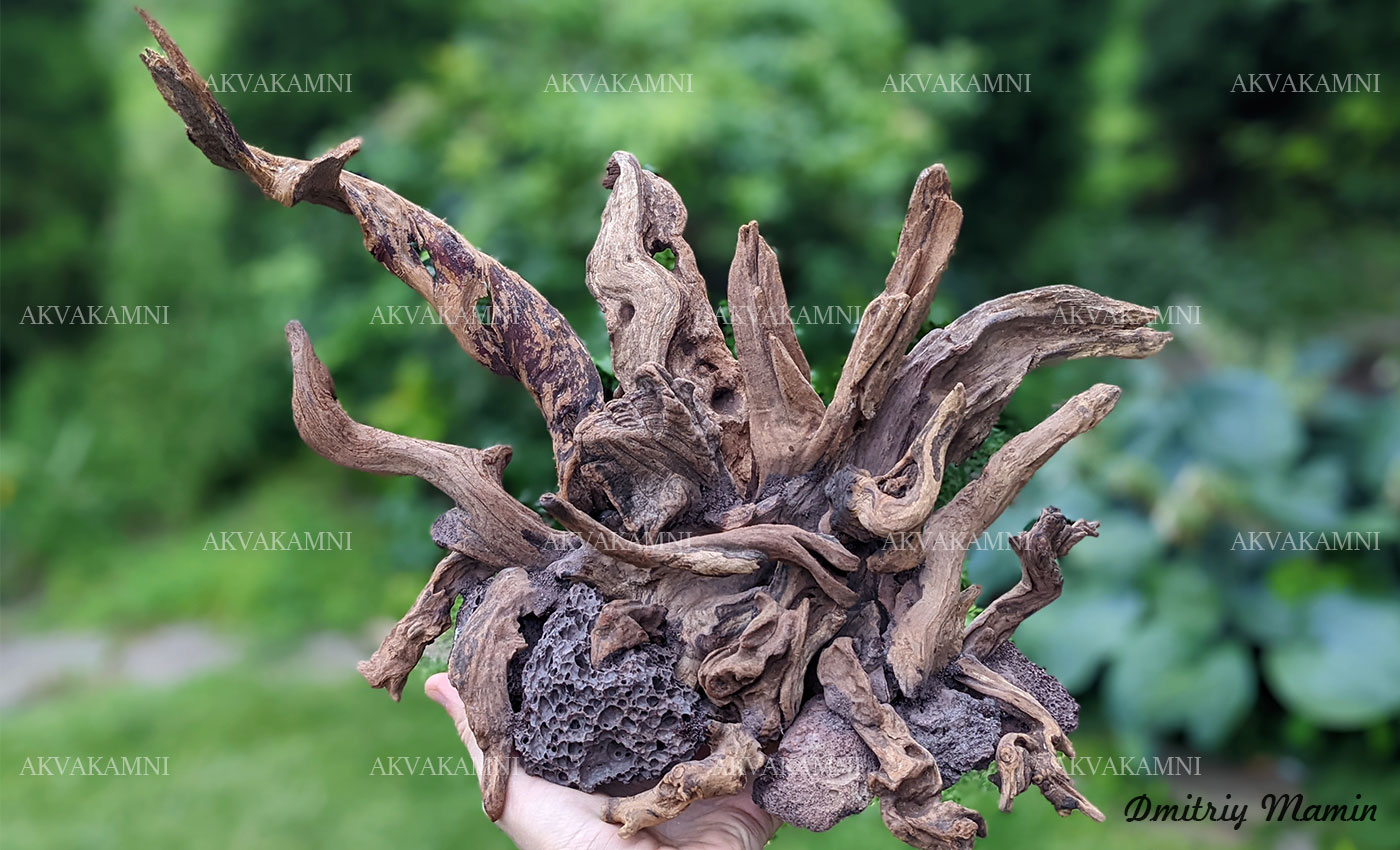 Эта композиция для аквариума - эксклюзивная авторская ручная работы. Выполнена из корней коралловых и камня .