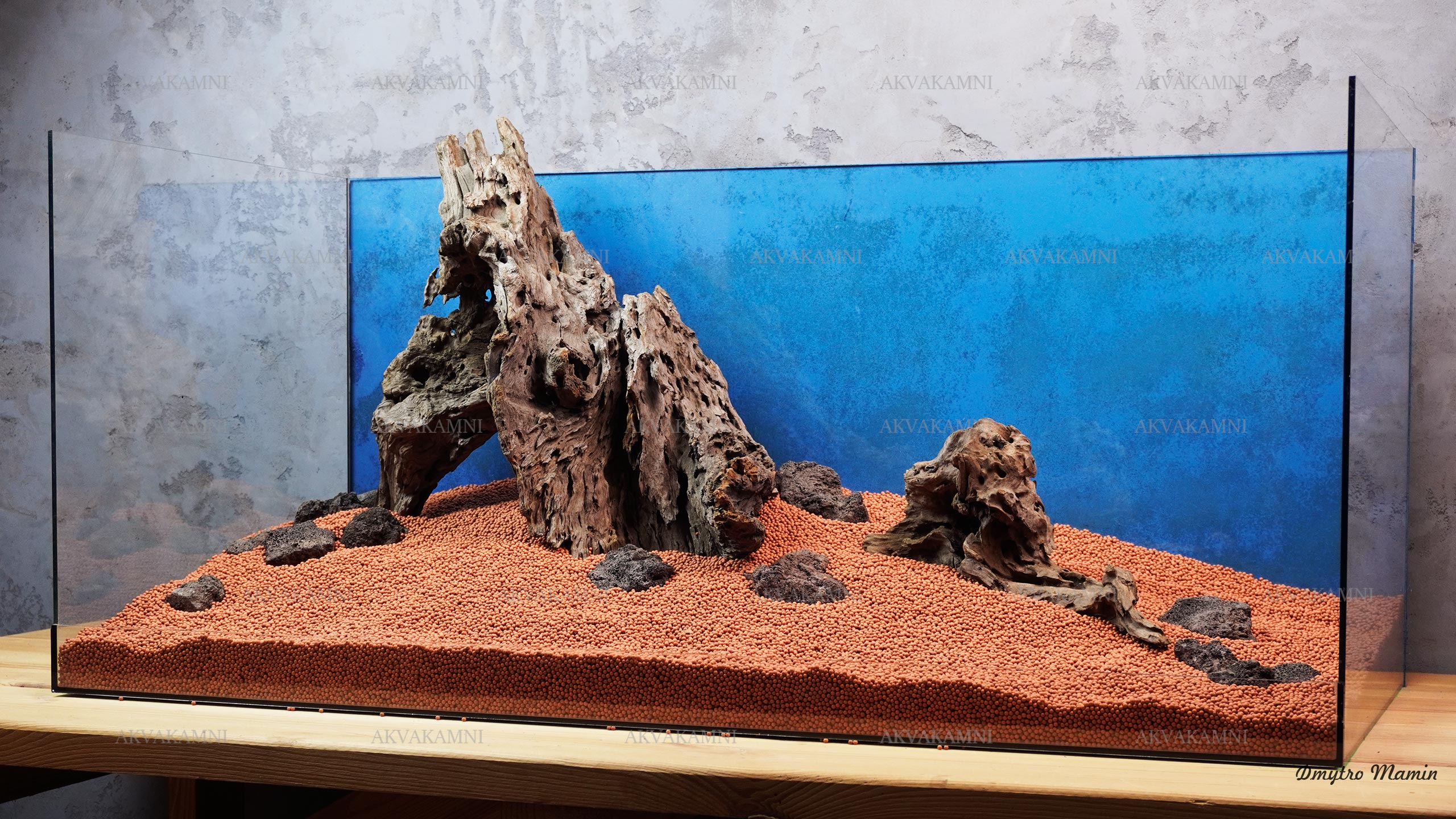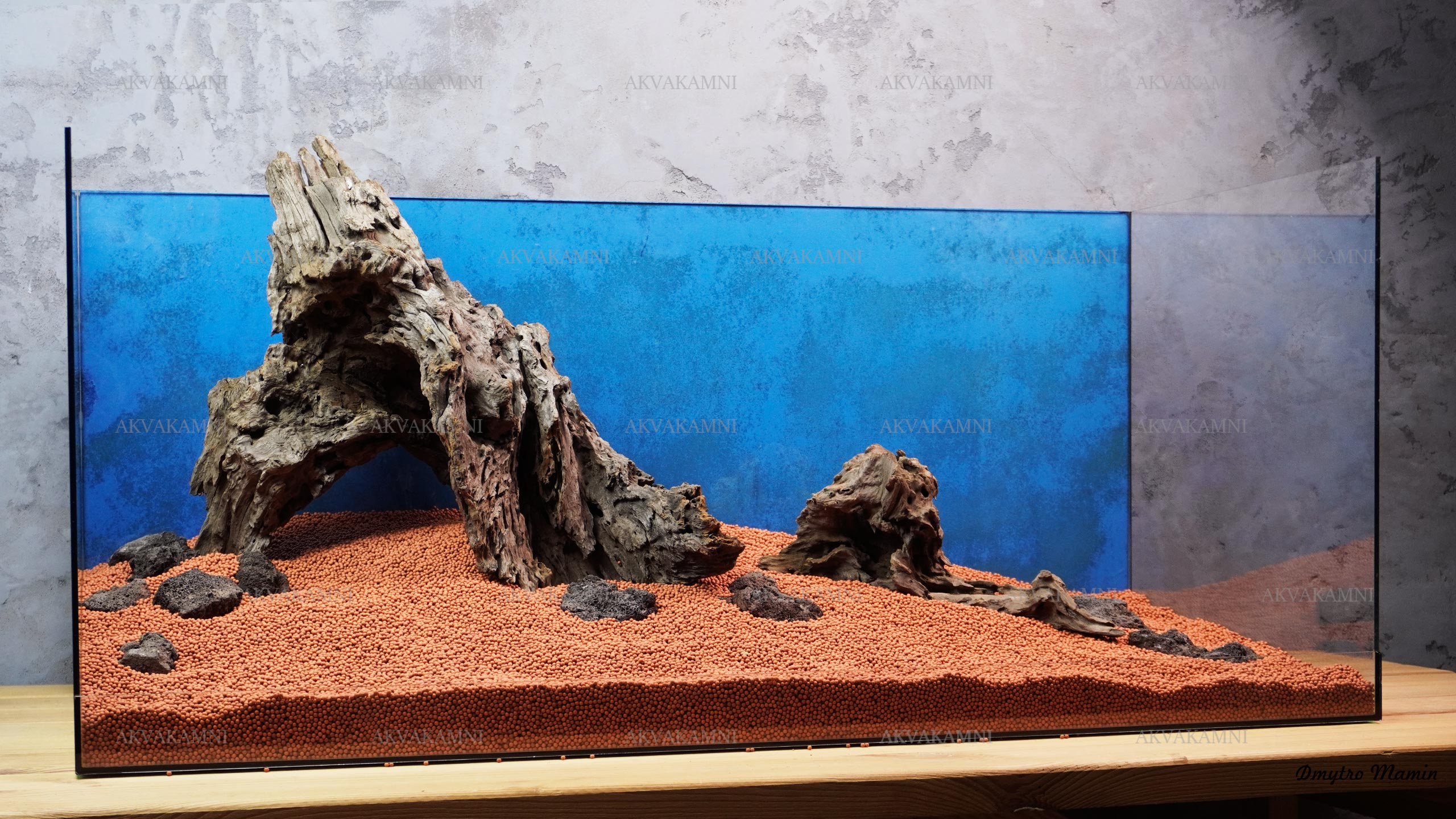 Композиція з каменю та корчів Лабіринт. Перед використанням корчі потрібно втопити на кілька днів, щоб вони наситилися та тонули. Корчі спочатку мінімально підфарбовуватимуть воду. У цьому немає нічого страшного для риб та води, але якщо Вам не подобається колір, корчі можна вимочити довше, або додати спеціальне вугілля у фільтр.