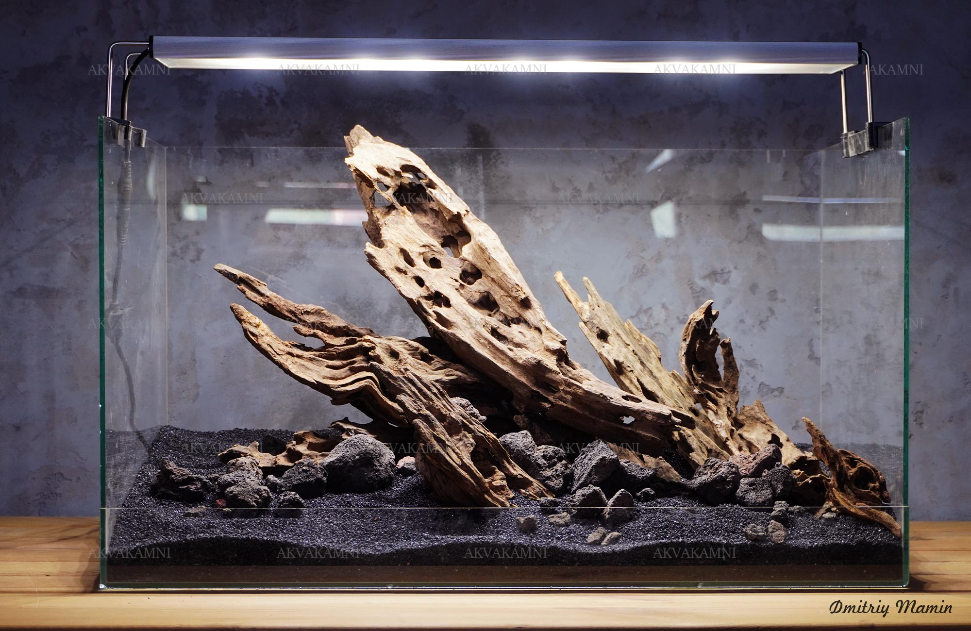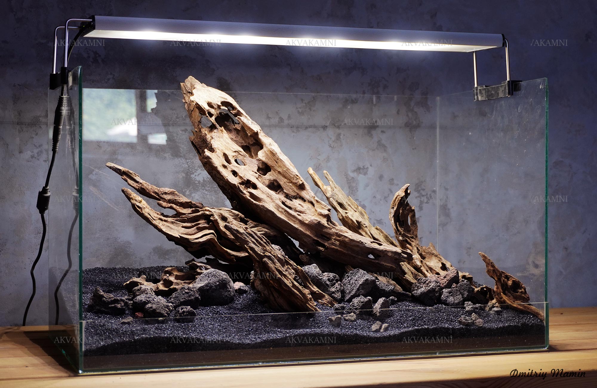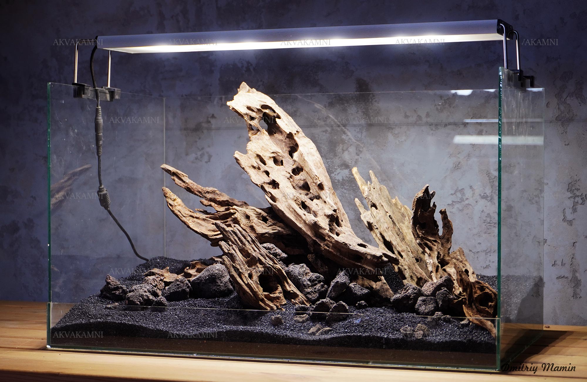 Композиція з каменю та корчів Лабіринт. Перед використанням корчі потрібно втопити на кілька днів, щоб вони наситилися та тонули. Корчі спочатку мінімально підфарбовуватимуть воду. У цьому немає нічого страшного для риб та води, але якщо Вам не подобається колір, корчі можна вимочити довше, або додати спеціальне вугілля у фільтр.