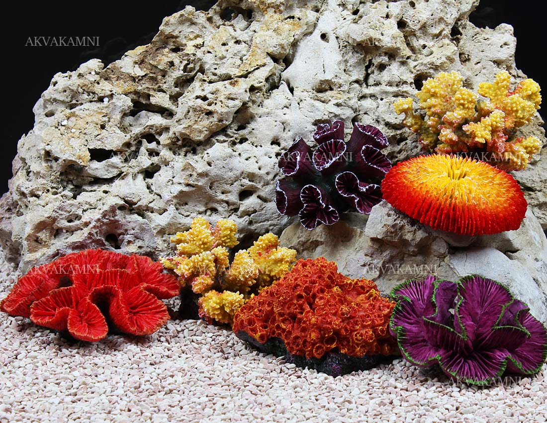 Декоративные кораллы для аквариума. Обычно используются в аквариума типа псевдоморе. Созданы из безопасных материалов компанией Trixie.