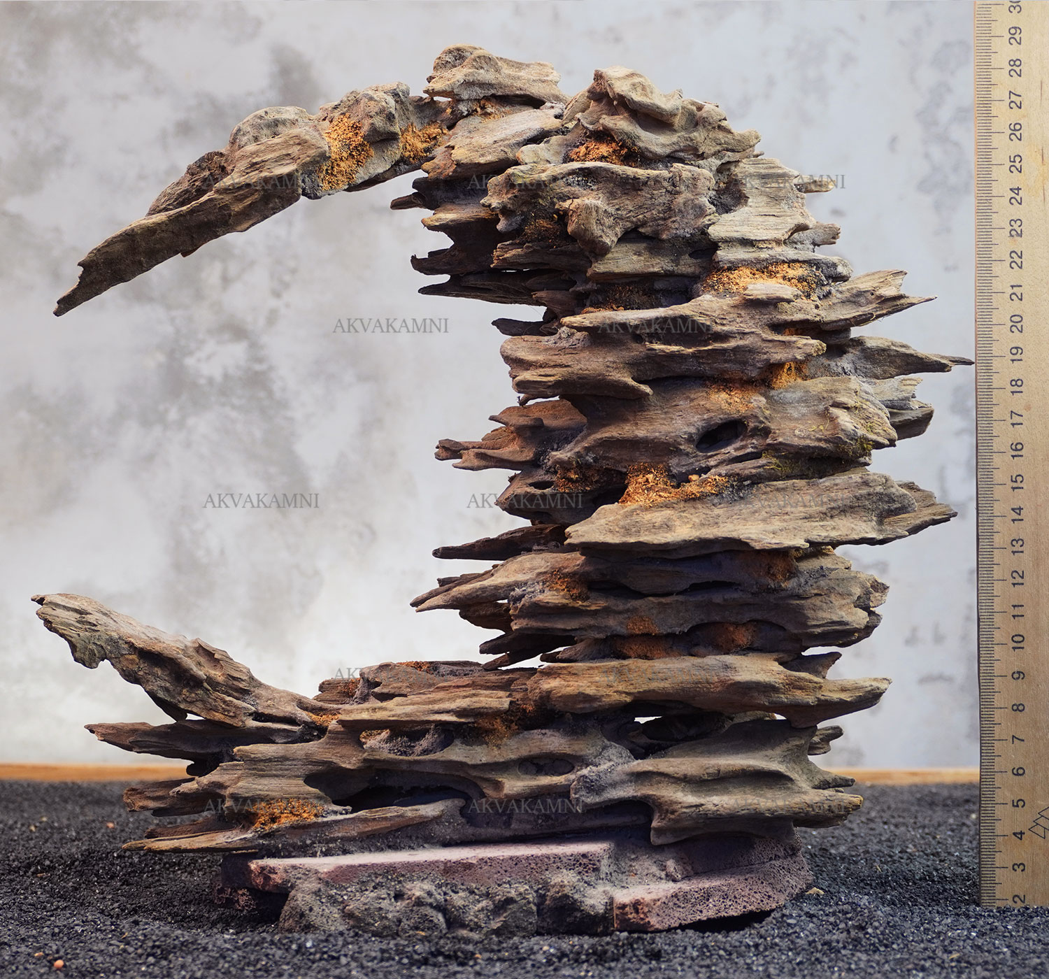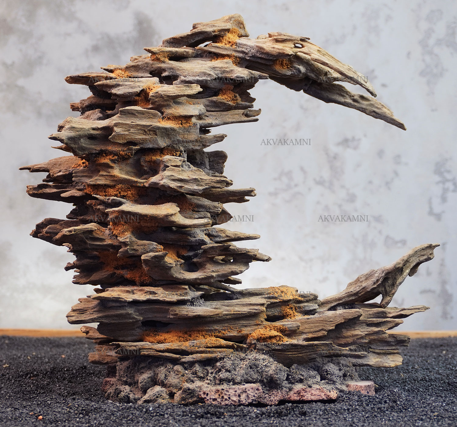 Композиция сделана из натуральных корней Лабиринт. В основе камни лавы, поэтому она сразу утонет. Первые две недели будет минимально подкрашивать воду за счет дубильных веществ в корнях. В этом нет ничего страшного, это безопасно для любых обитателей.