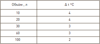 Таблица снижения температуры аквариумной воды (в градусах)*
